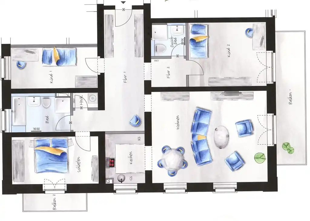 Nuestro apartamento, de 97 m2 a 124 m2, se puede alquilar de 1 a 5 personas.
