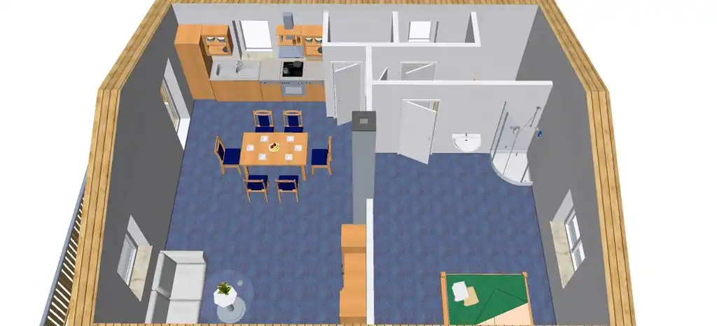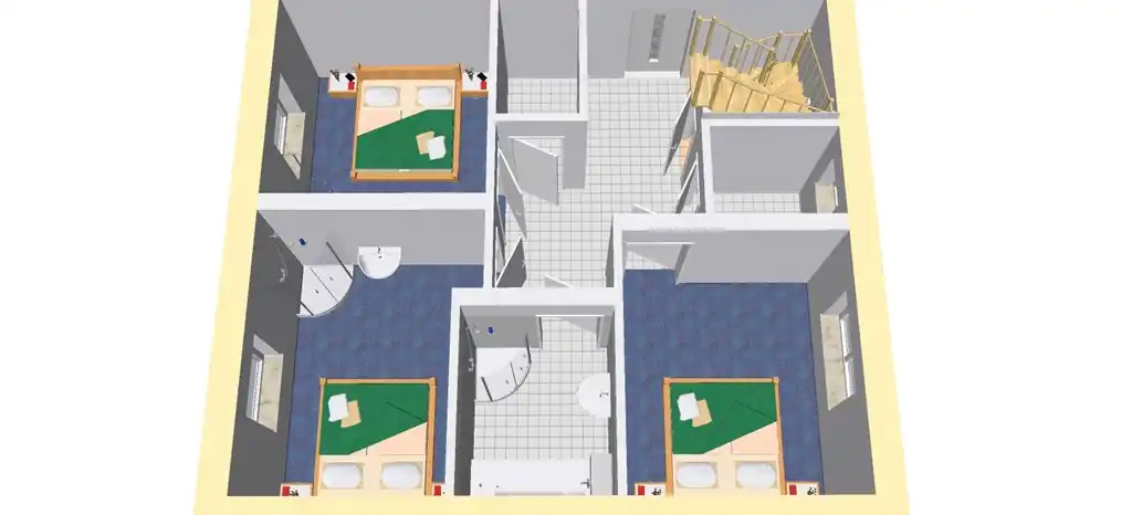 El chalet se construyó y desarrolló internamente. Por ello, hemos podido tener en cuenta las necesidades de los grupos objetivo a los que está dirigido el chalet Giusto. Por ejemplo, nuestro chalet es ideal para una familia numerosa o para una familia donde también vienen el abuelo y la abuela. El chalet tiene 3 dormitorios, 2 de los cuales cuentan con ducha con lavadero. El chalet también dispone de un baño independiente con ducha y bañera.