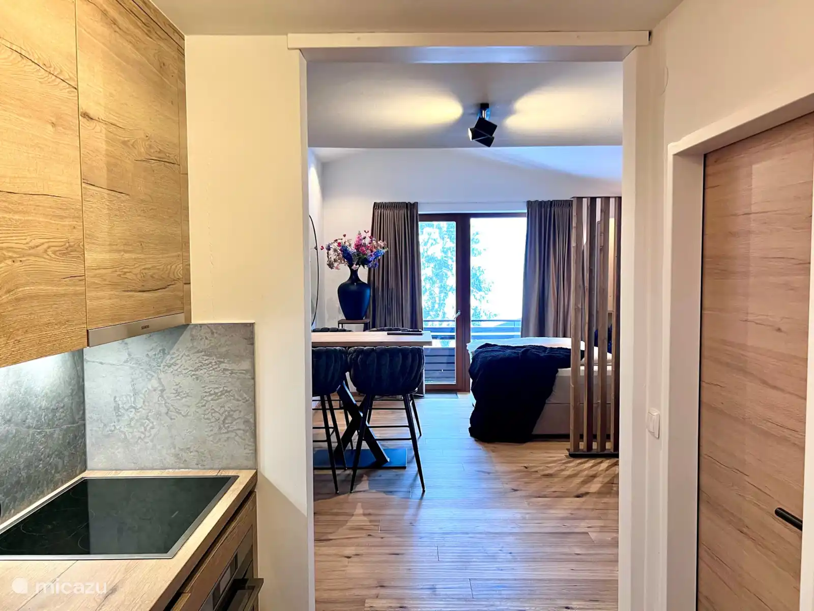 Nuestro apartamento/estudio de lujo ha sido completamente renovado, descubra la combinación perfecta de estilo, comodidad y máximo disfrute en el lujo de nuestro apartamento estilo loft "The Suite in Königsleiten". Con techos altos que crean sensación de amplitud, este apartamento se distingue por su aspecto moderno, acabados lujosos y materiales de alta calidad. Este moderno loft ofrece un espacio para vivir, vivir y dormir en uno, con un cómodo sofá (para dormir) de 200x160 y una lujosa cama doble con somier. La zona de dormitorio está separada por un robusto biombo de madera para mayor privacidad. Puede crear las comidas más sabrosas en la moderna cocina, totalmente equipada con electrodomésticos de alta calidad y muebles elegantes. El hermoso cuarto de baño tiene una cabina de ducha, un inodoro, un lavabo doble y, muy bonito, una lavadora y secadora. Desde el estudio se accede al soleado balcón (totalmente al sur), donde se puede disfrutar del sol desde la mañana hasta tarde. Ubicado en el último piso, ofrece impresionantes vistas a las montañas. Y para relajarte después de un día lleno de aventuras en la montaña, podrás disfrutar del atardecer en el balcón con un buen libro o una bebida. El apartamento cuenta con Smart TV y sistema Sonos para música. ¡Lo disfrutarás al máximo en De Suite Königsleiten!