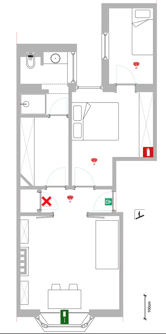 Equipado con todas las comodidades. Adecuado para máx. 4 personas (2V + 2K O 3V + 1K) y bebé (<2 años) Las literas dadas en el segundo dormitorio, pueden no ser adecuadas para 4 adultos.