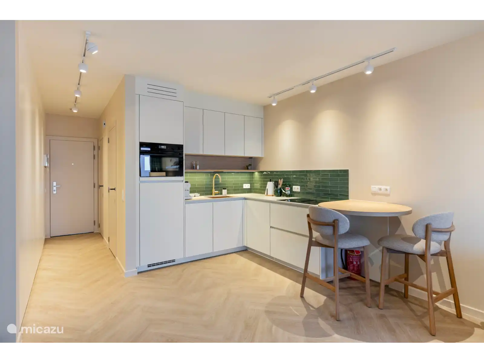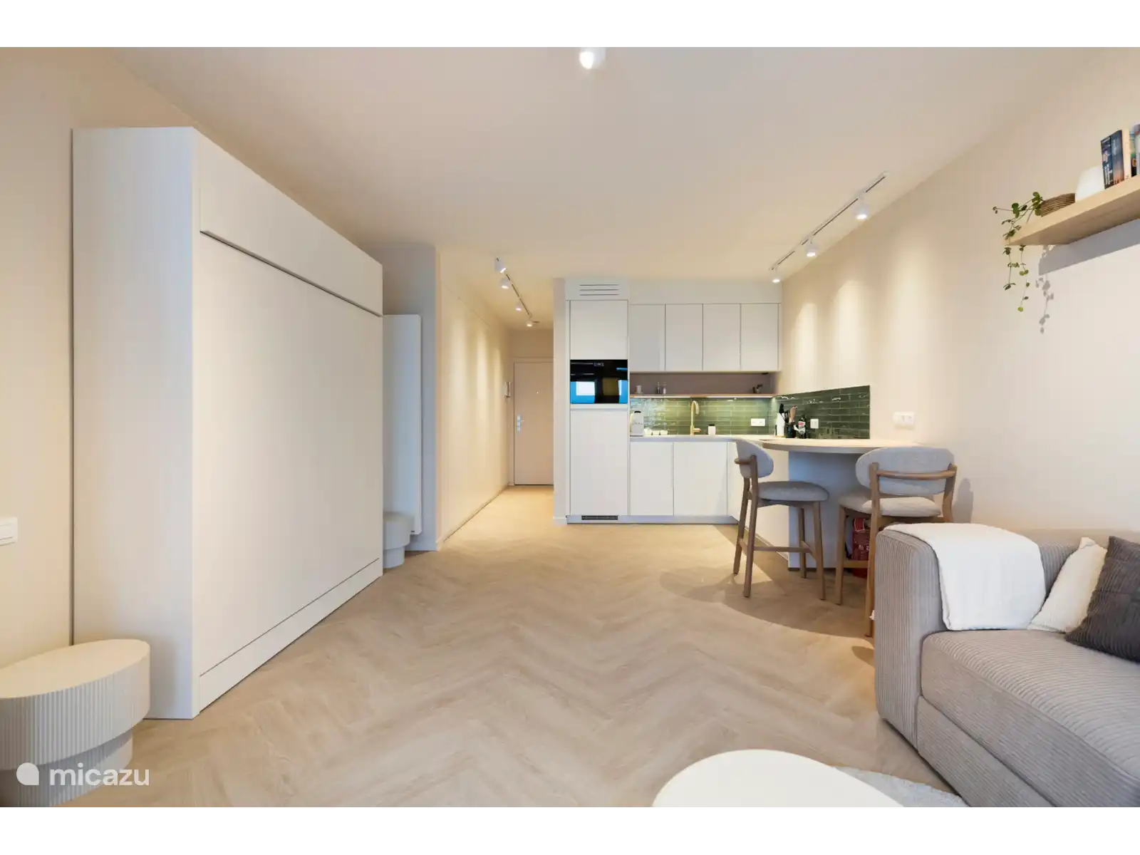 El estudio está diseñado de forma ingeniosa, con una cama de pared en el salón, un baño moderno con ducha a nivel de agua y inodoro independiente, y una cocina totalmente equipada. Para tu comodidad, hay calefacción, Wi-Fi, televisor inteligente, lavadora con secadora y todas las comodidades básicas que necesitas para una estancia sin complicaciones.