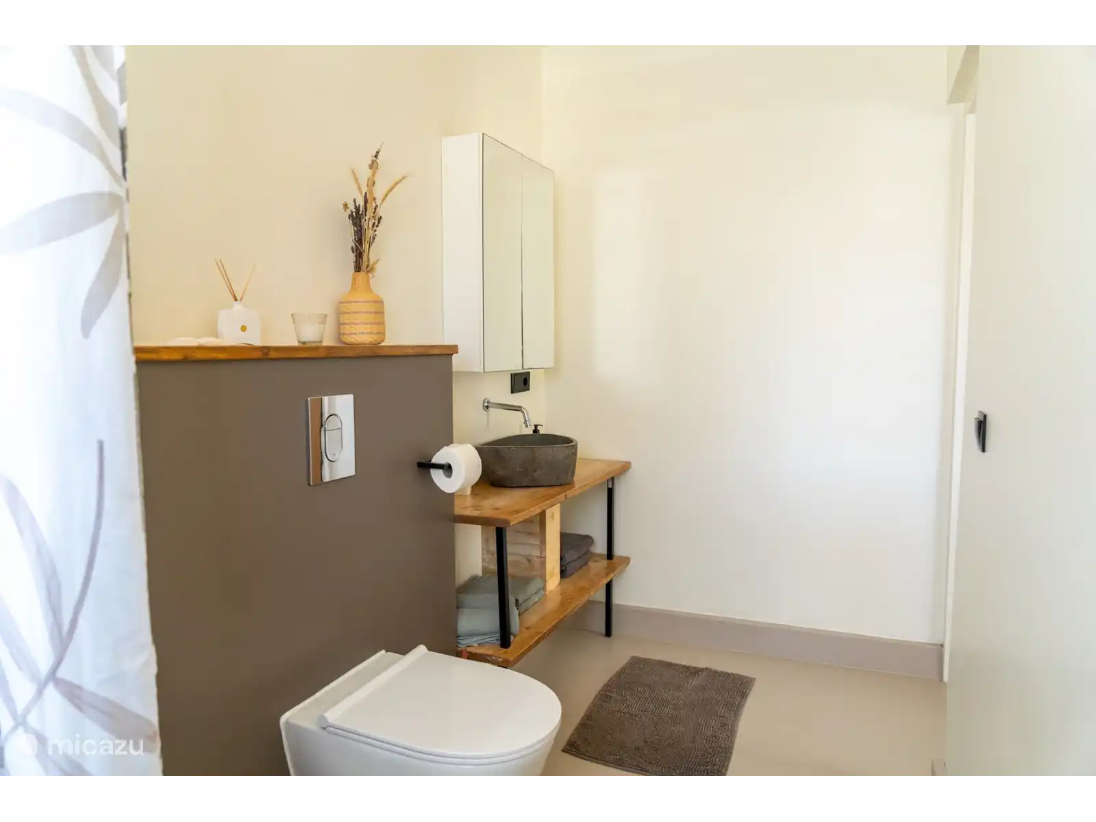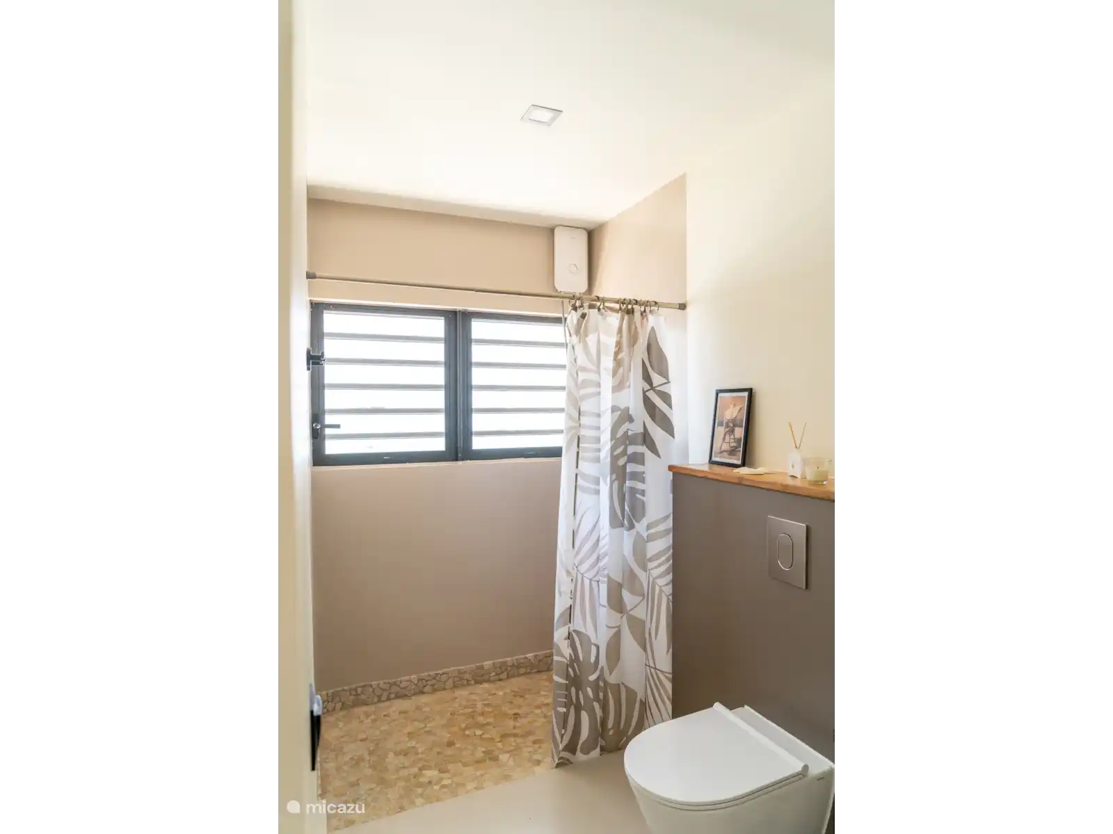 - El amplio cuarto de baño tiene una ducha que se puede calentar eléctricamente.