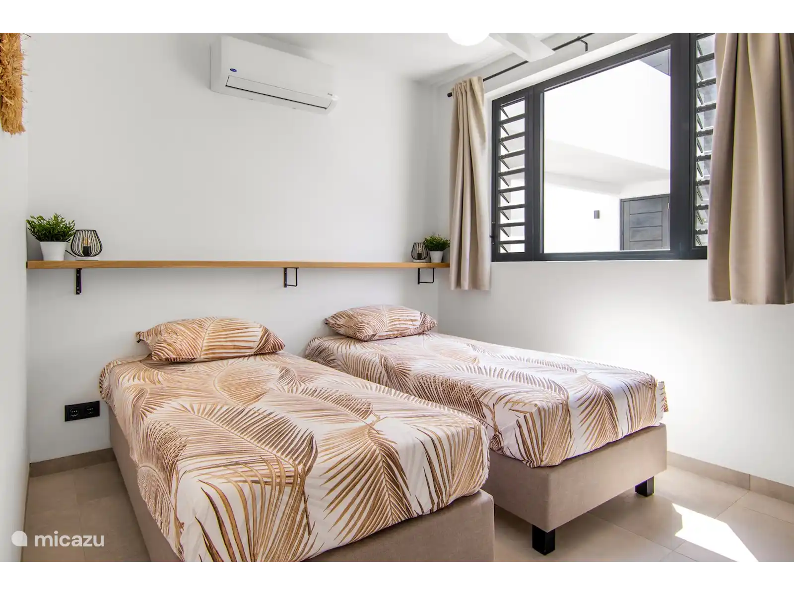 - 2 dormitorios con camas con somier y equipados con ventilador de techo y aire acondicionado
