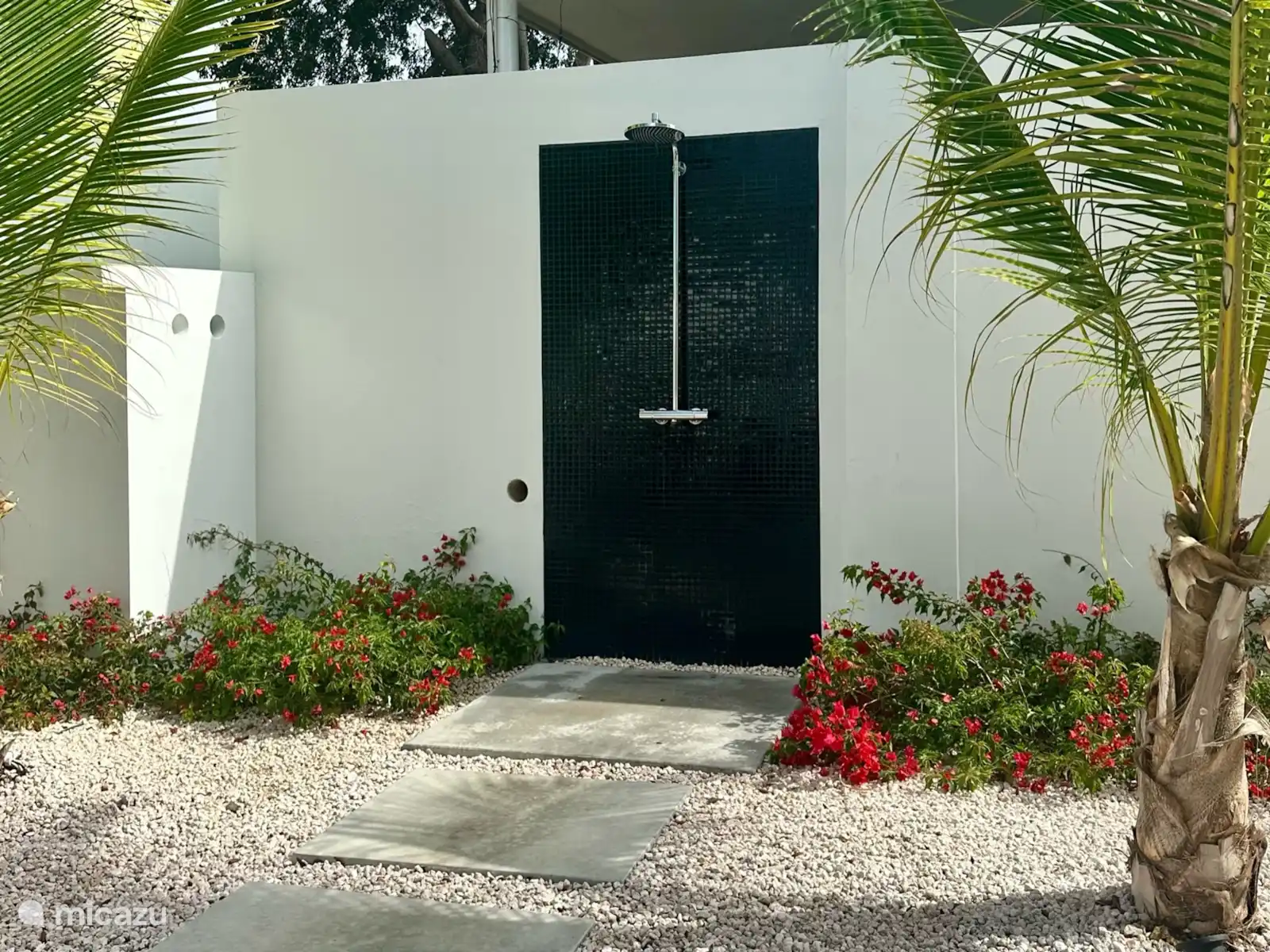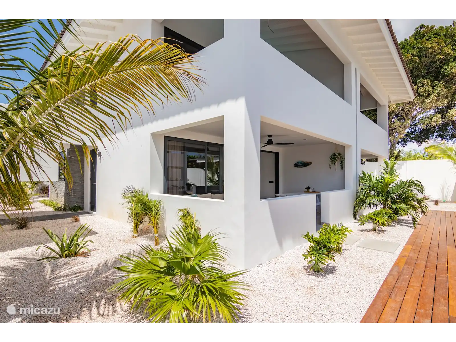 Las habitaciones están amuebladas con camas con somier muy cómodas, amplio espacio de guardarropas y equipadas con ventilador de techo y aire acondicionado. Ambas habitaciones tienen un baño muy lujoso con ducha de lluvia, lavabo e inodoro. En la terraza cubierta podrá sentarse a la mesa o relajarse en el salón y disfrutar de las vistas al hermoso jardín con una amplia piscina de 23 metros, tumbonas y ducha exterior.
