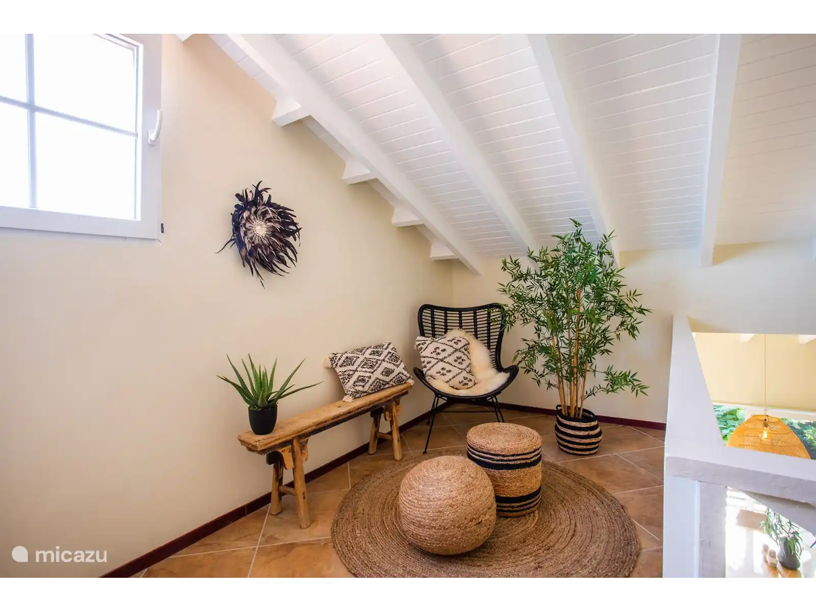 El ático tiene una cocina abierta y un precioso porche con vistas a las numerosas palmeras y a la piscina. En el porche hay un comedor y una zona de descanso, y generalmente hay una brisa agradable. En el salón interior hay una amplia zona de estar con televisor de pantalla plana y un comedor adicional. En la última planta hay el tercer dormitorio, así como el tercer baño y un amplio loft con un lugar agradable para relajarse.