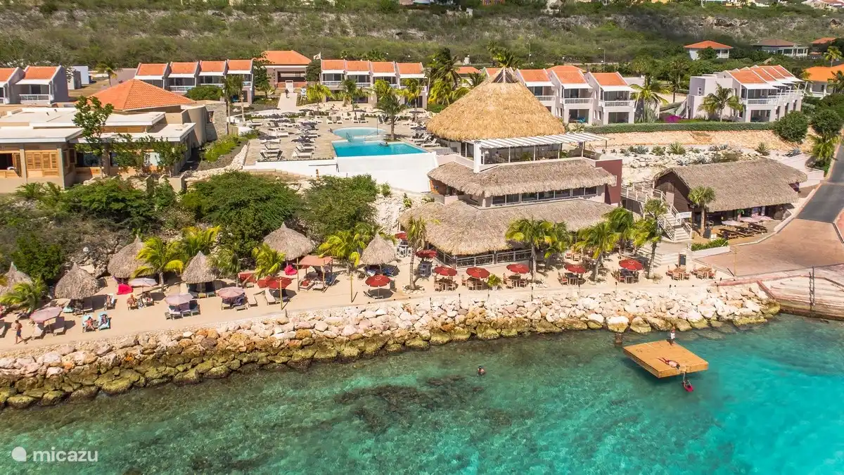 El hermoso jardín vivo detrás de la casa está muy bien expuesto al viento. Aquí es realmente bueno quedarse en las cálidas tardes de Curazao. Hay una gran piscina con mucho espacio a su alrededor para disfrutar del sol. También hay espacio más que suficiente para que los niños jueguen. Para escapar del sol, se ha construido una gran palapa. Debido a la amplia distribución del patio trasero, hay varios lugares donde puede sentarse y disfrutar del hermoso entorno.