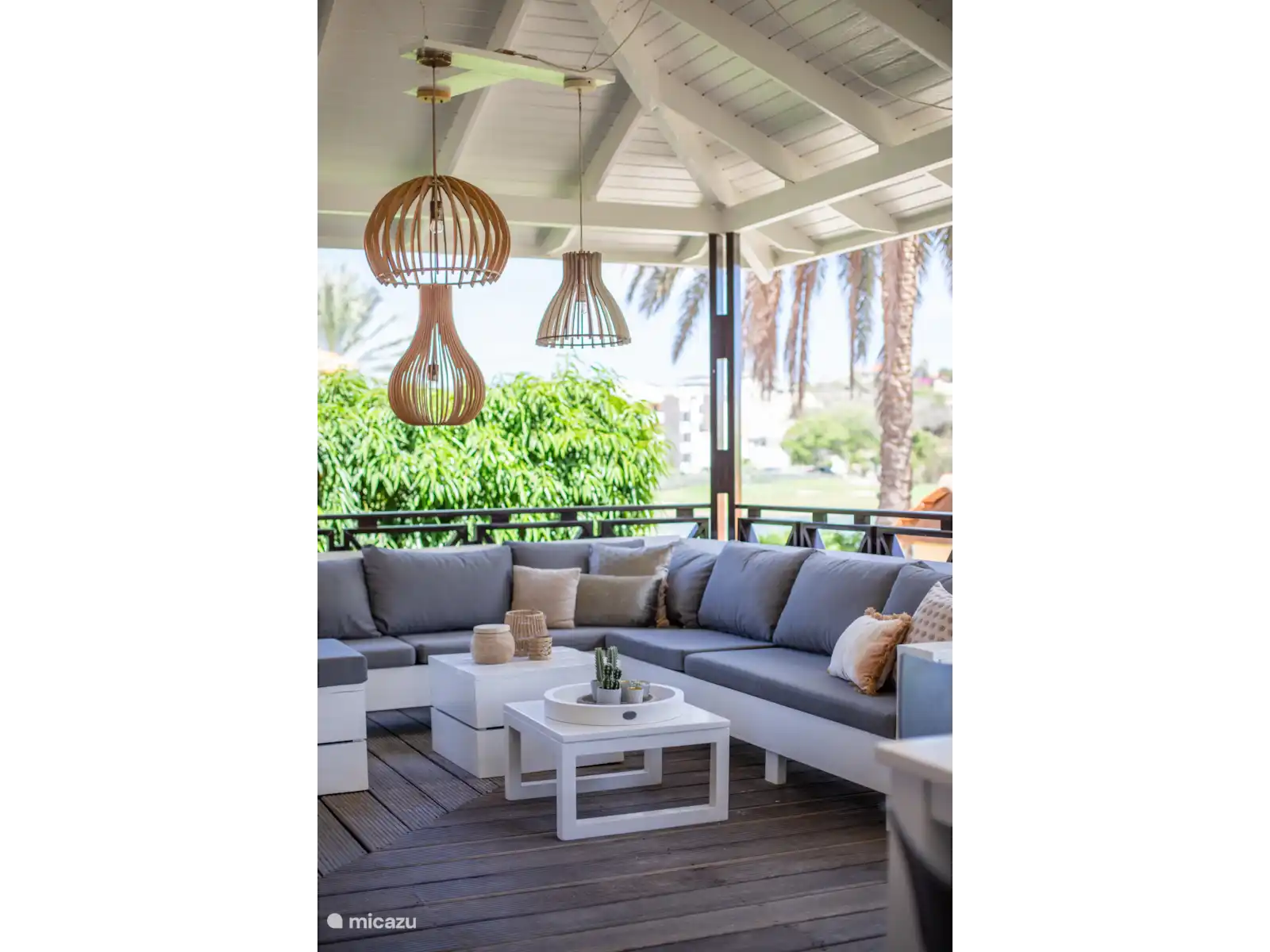 Mediante contraventanas de madera y ventiladores de techo determinas tú mismo la temperatura más agradable; también hay ventiladores de techo en la veranda, con otro potente ventilador móvil que puedes mover a tu gusto.