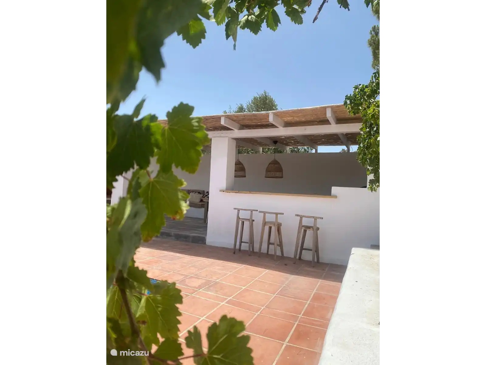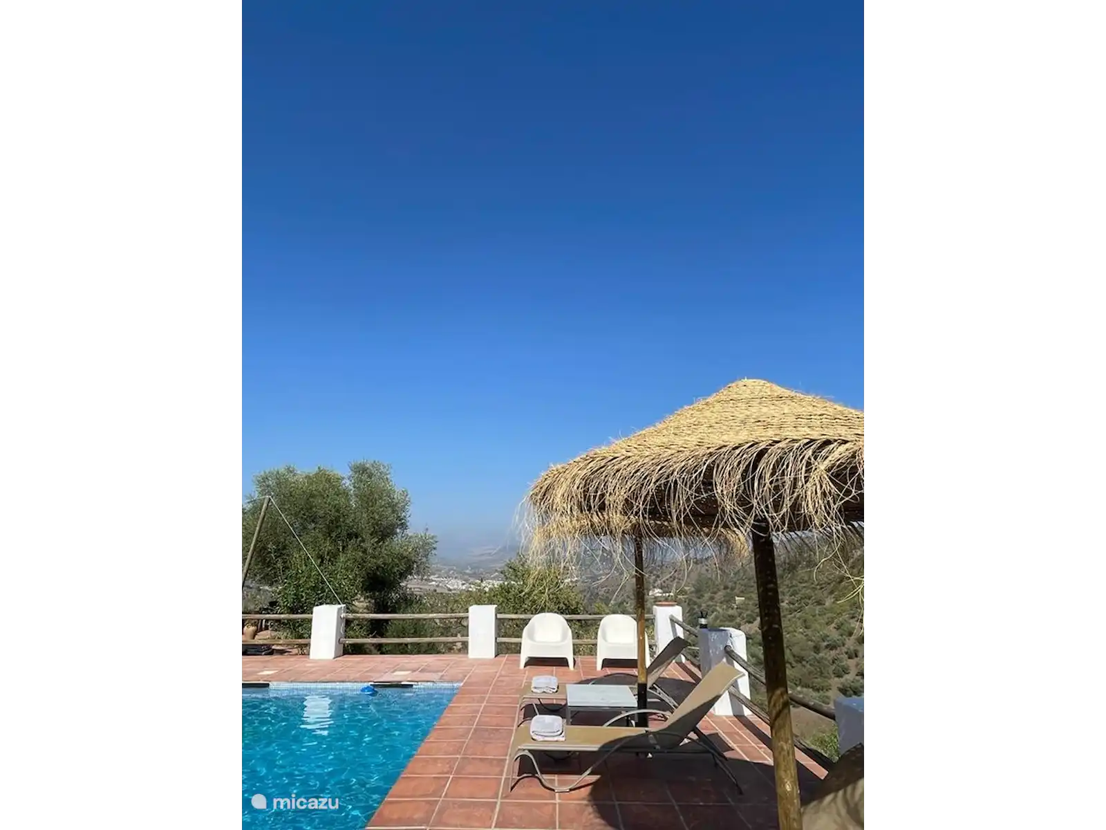 Hay un precioso jardín en el patio con cítricos e higueras, cipreses y bambú, además de una terraza. Justo al lado de la casa encontrarás una gran terraza, parte de la cual está cubierta en verano contra el calor. La terraza ofrece una hermosa vista sobre las verdes montañas con olivos de la Axarquía y la Sierra Nevada a lo lejos. Estás completamente libre en la preciosa piscina que está al sol todo el día. Aquí hay muchas tumbonas y sombrillas para relajarse.