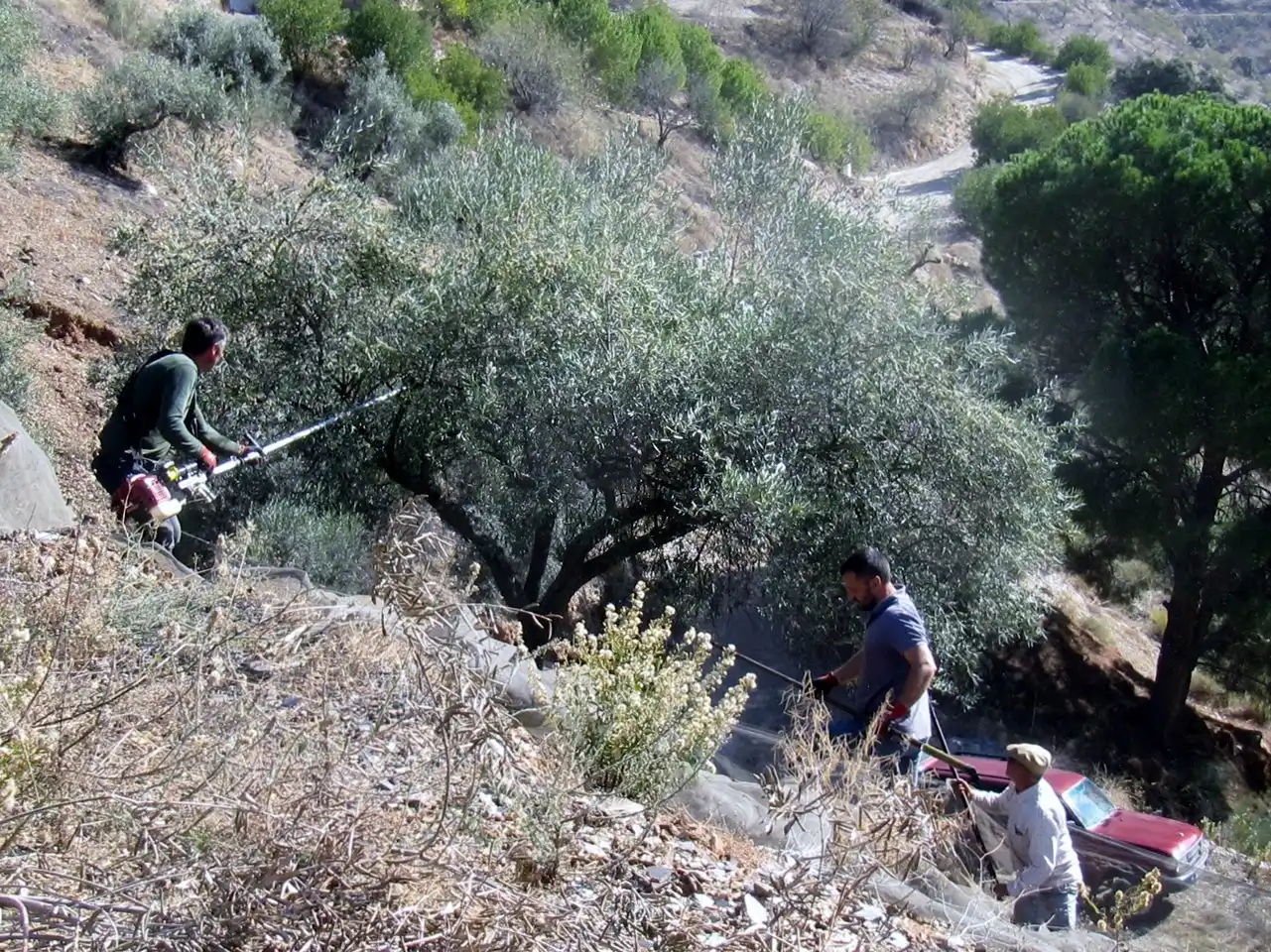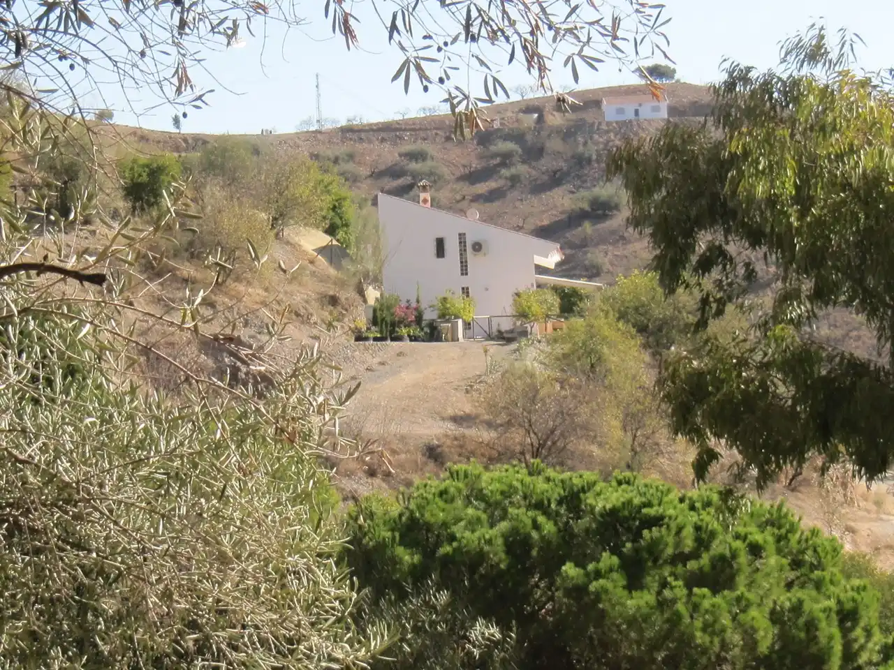 Tras unos 5 km se continúa por una carretera (parcialmente) sin asfaltar a través de los Montes de Málaga y , tras unos 1500 metros, la Finca se encuentra en un lugar tranquilo y agradable en pleno centro de la naturaleza, donde hay mucha paz y tranquilidad con la belleza de olivos, almendros, adelfas, cítricos y otros árboles y plantas especiales.