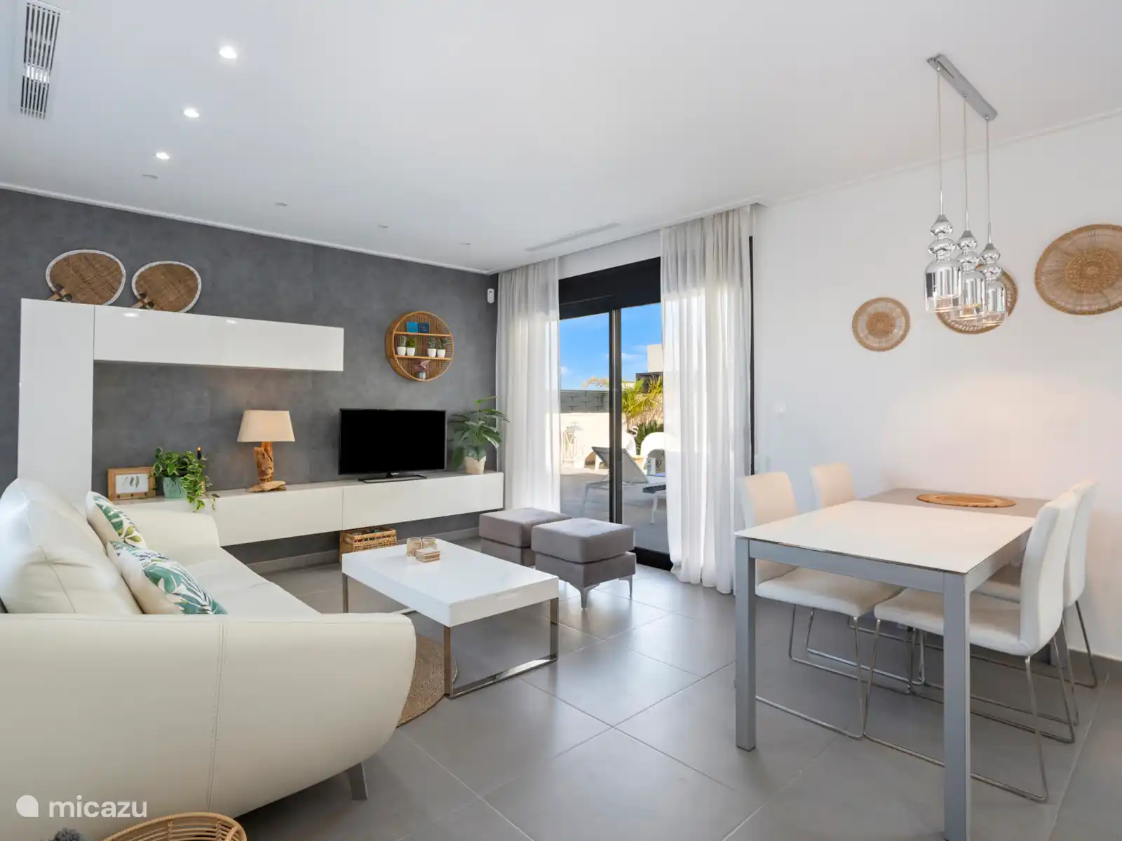 El salón está amueblado con muebles modernos, con posibilidad de conectar el portátil a la televisión.