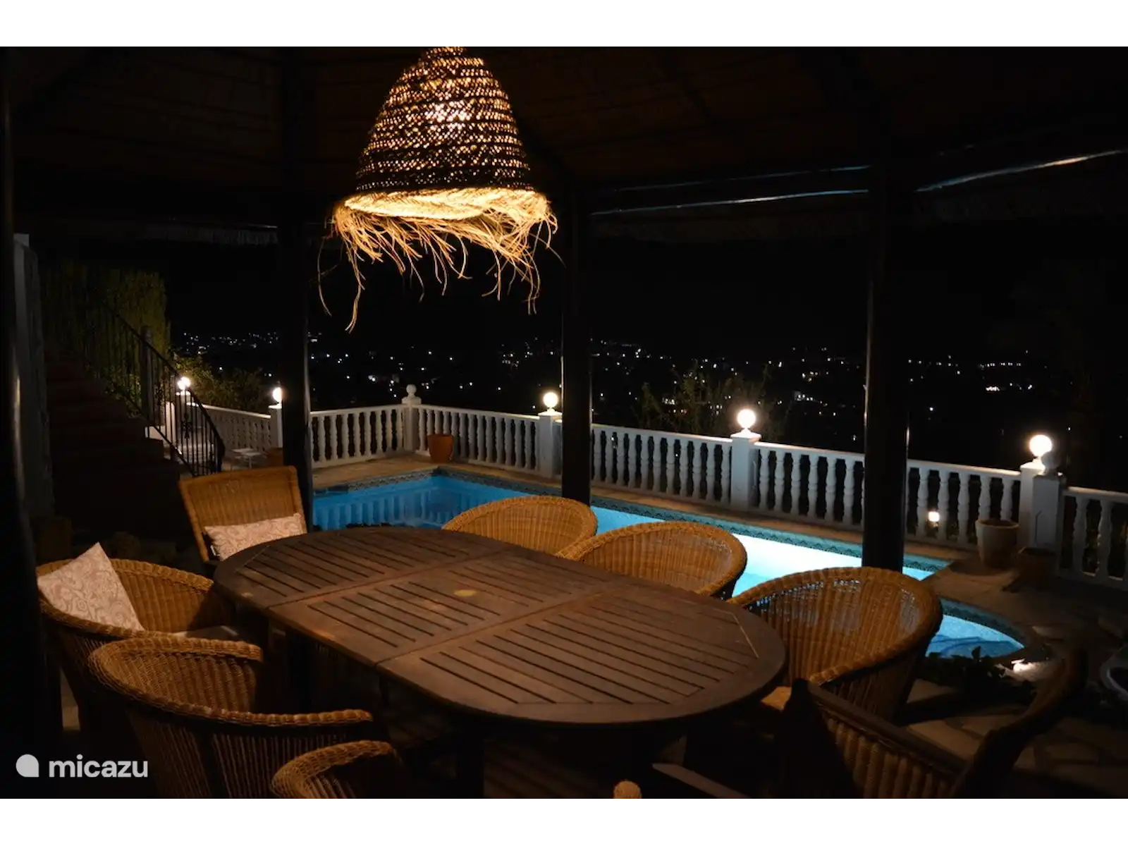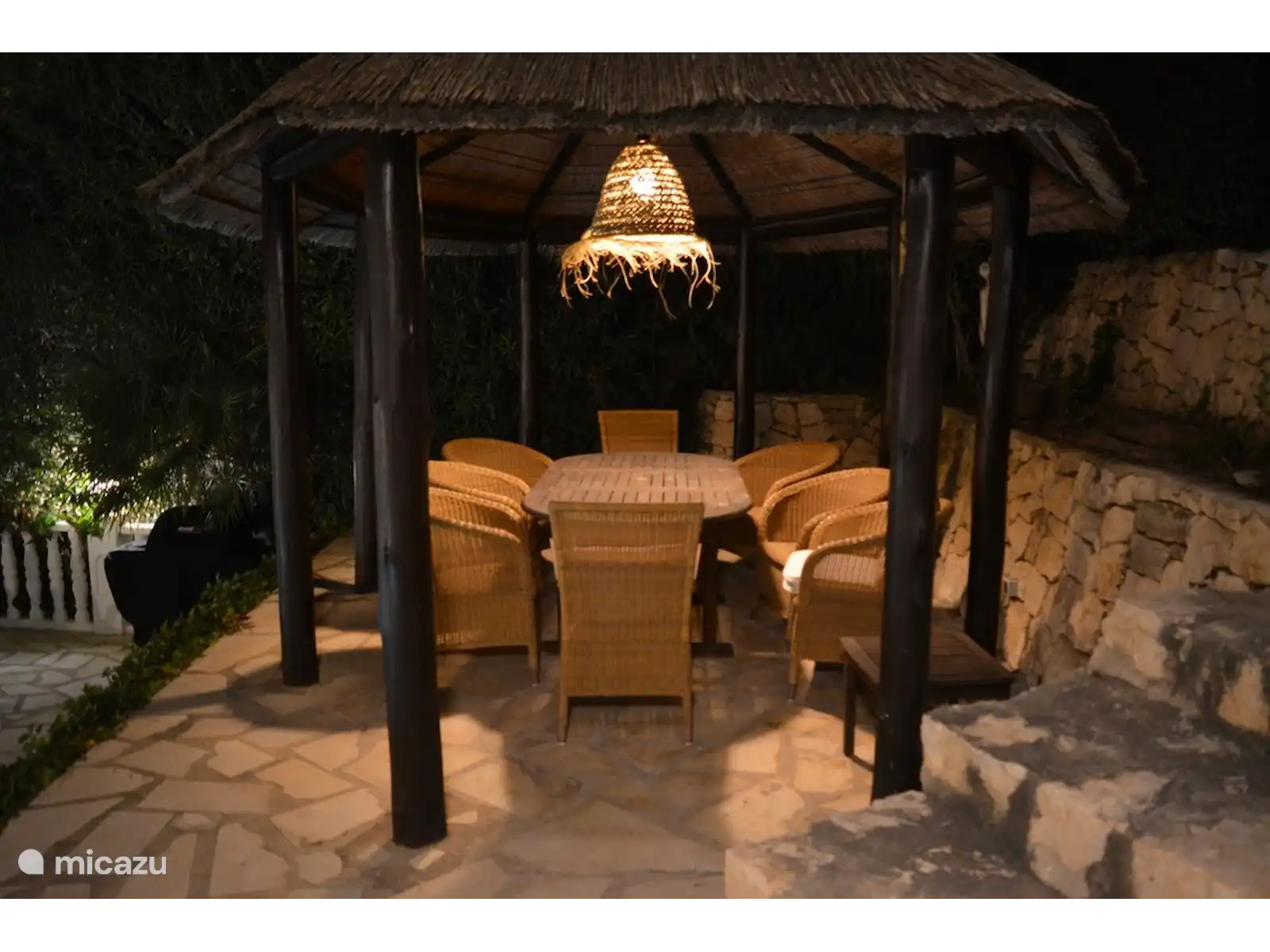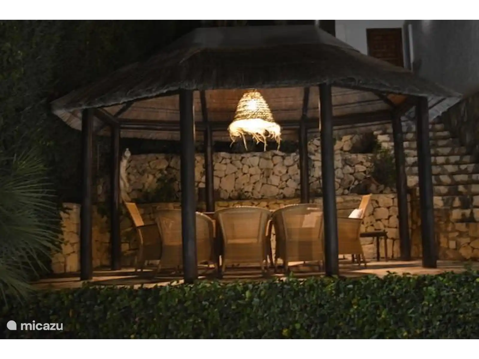 En la soleada terraza orientada al sur-sureste se encuentra la amplia piscina con ducha exterior. En el jardín hay varias zonas para sentarse y tumbonas, y hay una pérgola para la sombra necesaria, además de varias sombrillas.