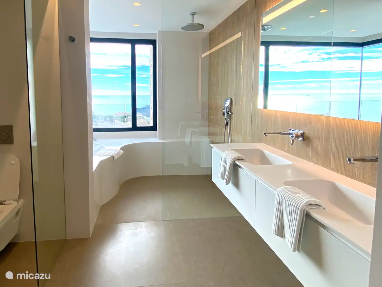 Con un total de 5 amplios dormitorios y 4 elegantes baños, Villa Merula ofrece mucho espacio para familias y grupos de amigos. Cuatro dormitorios y tres baños se encuentran en la villa principal, mientras que un apartamento separado con su propio dormitorio, baño, sala de estar y cocina ofrece privacidad adicional, ideal para abuelos, amigos o una familia a la que le gusta estar un poco más sola.