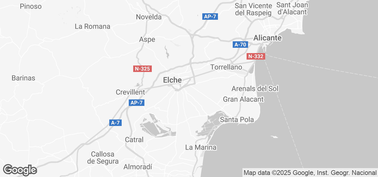 Está situada a 11km del mar Mediterráneo. A 2 km del núcleo urbano de Elche. Ciudad en la que hay declarados 2 patrimonios de la Humanidad.