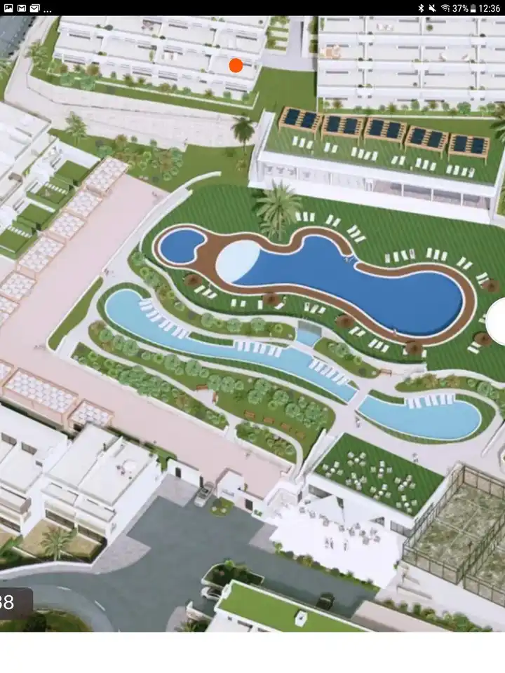 Luego hay una gran terraza soleada de 35 m² que da a las 3 hermosas piscinas y un exuberante jardín tropical, y también una vista espectacular del mar Mediterráneo. También hay una piscina cubierta, una sala de fitness y 2 pistas de pádel para los amantes del deporte. Para los niños, un parque infantil y bastidores de sujeción.