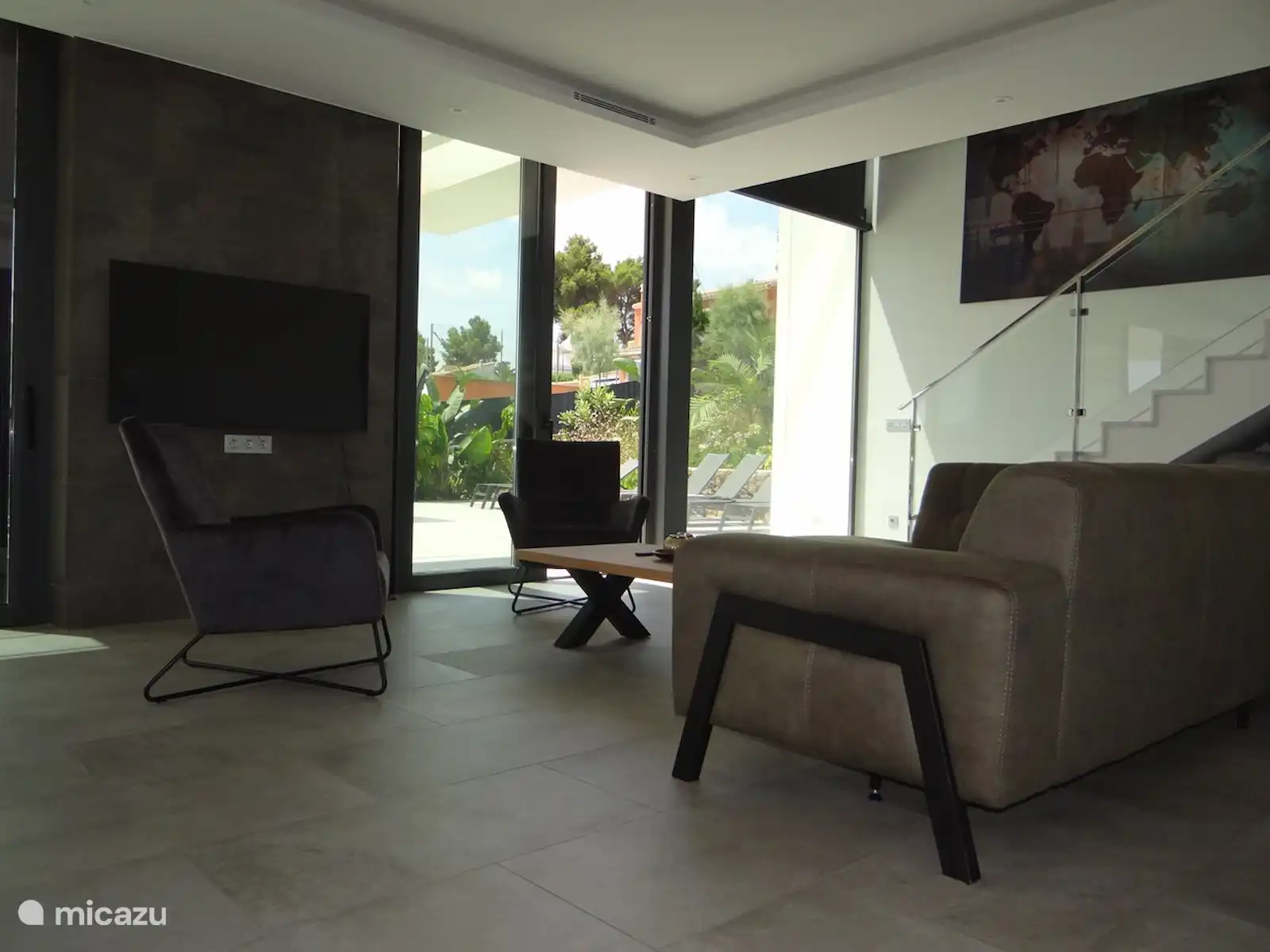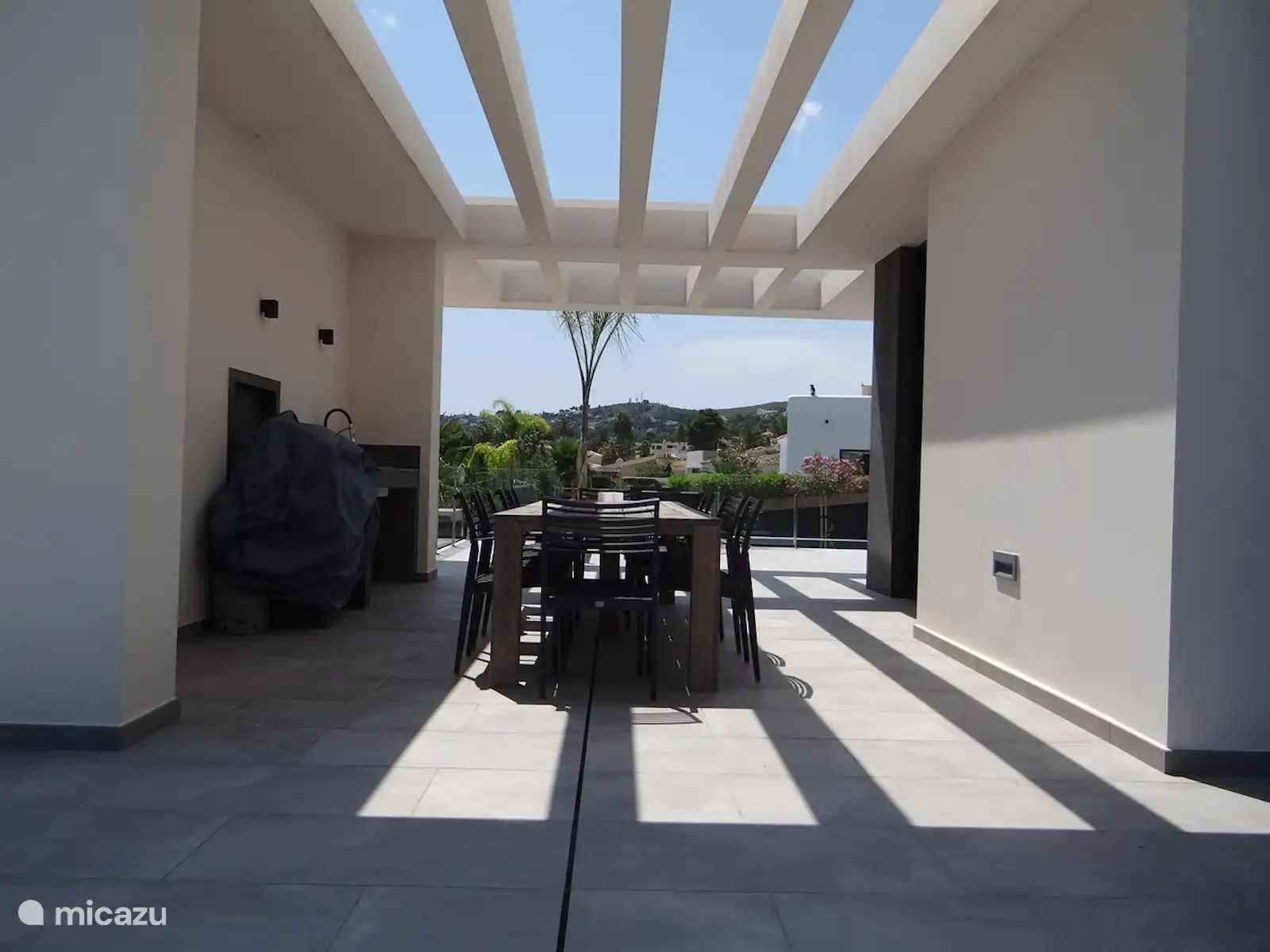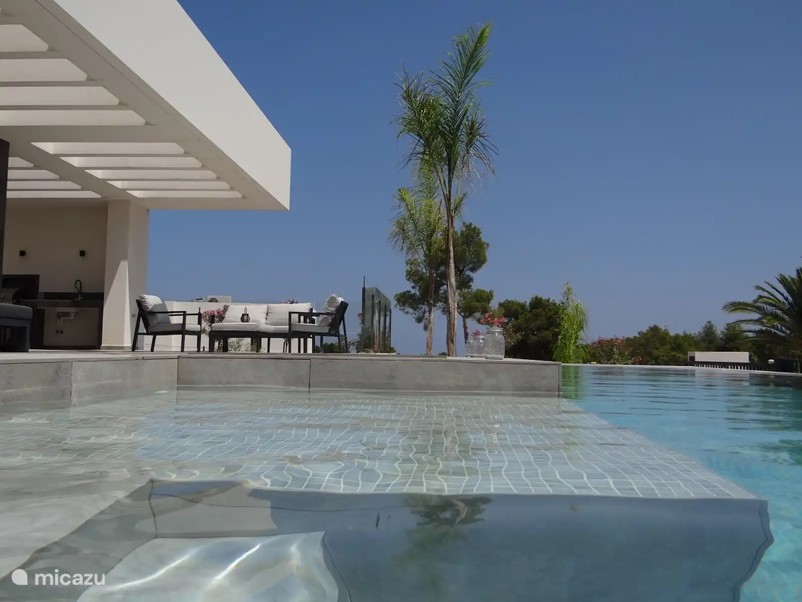 En la planta baja se encuentra la acogedora sala de estar con una amplia sala de estar, TV y una gran mesa de comedor donde puede sentarse fácilmente con 8 personas. La cocina es abierta y está equipada con todos los electrodomésticos modernos. Desde la cocina se tiene una hermosa vista de las distintas terrazas. El dormitorio principal de la planta baja, con baño completo en suite, tiene una gran cama doble y un amplio espacio de armario. El moderno cuarto de baño está equipado con lavabo, inodoro y ducha de lluvia. Desde este dormitorio se atraviesa las puertas correderas que dan a la terraza y se tiene una vista del jardín mediterráneo. En el primer piso encontrará 3 amplios dormitorios, todos con baño privado (lavabo, inodoro, ducha de lluvia), 2 camas individuales y mucho espacio en el armario. Las habitaciones están situadas en un balcón con vistas panorámicas al mar y a las montañas. ¿Buscas sombra o sol? Hay para todos los gustos. La terraza de la parte delantera es espaciosa e invita a relajarse a la sombra en el salón. Desde el salón se tiene una vista de la piscina infinita. En el lateral de la casa se encuentra la cocina exterior con una gran mesa de comedor donde se puede cenar hasta altas horas de la noche. En la parte trasera, se ha creado un hermoso lugar a la sombra. La piscina infinita es realmente fantástica. 10x5 metros con un fondo inclinado hasta 2 metros de profundidad. También hay una zona poco profunda donde puedes sentarte en el agua. Hay muchas tumbonas para disfrutar del sol. El jardín está muy bien cuidado y ofrece total privacidad. Puede aparcar su coche en su propia propiedad aislada, al lado de la villa. La villa está a menos de 5 minutos en coche o a 15 minutos a pie de la playa de arena y el agradable bulevar con bonitas terrazas, restaurantes y discotecas. Un gran supermercado se encuentra a solo 5 minutos a pie.