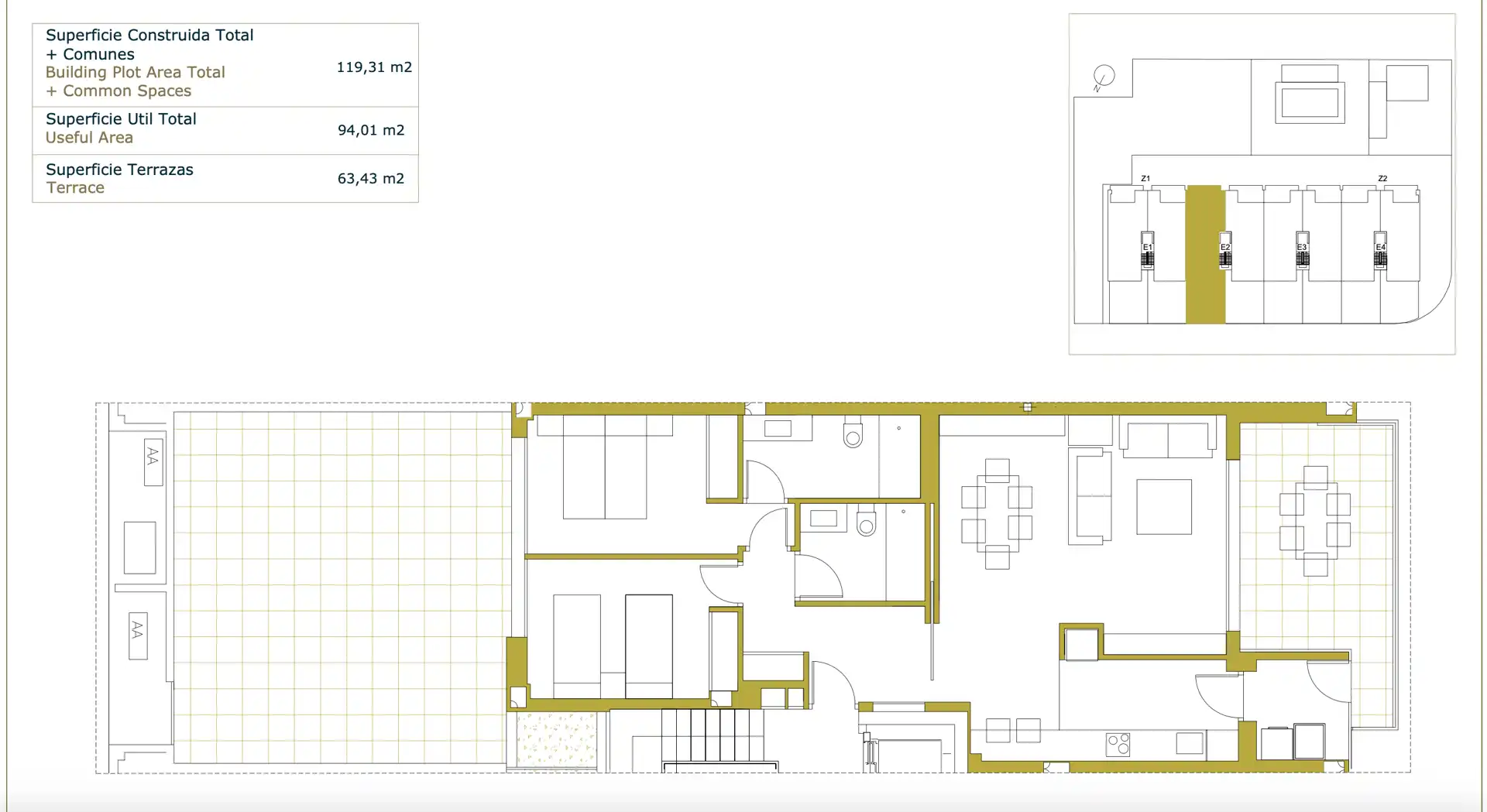 Se puede acceder a la amplia terraza desde la sala de estar y cuenta con una sala de estar relajante y una mesa al aire libre para el desayuno o la cena. Desde aquí hay una vista de la piscina y se puede disfrutar del sol durante todo el día. (Orientado al sur).