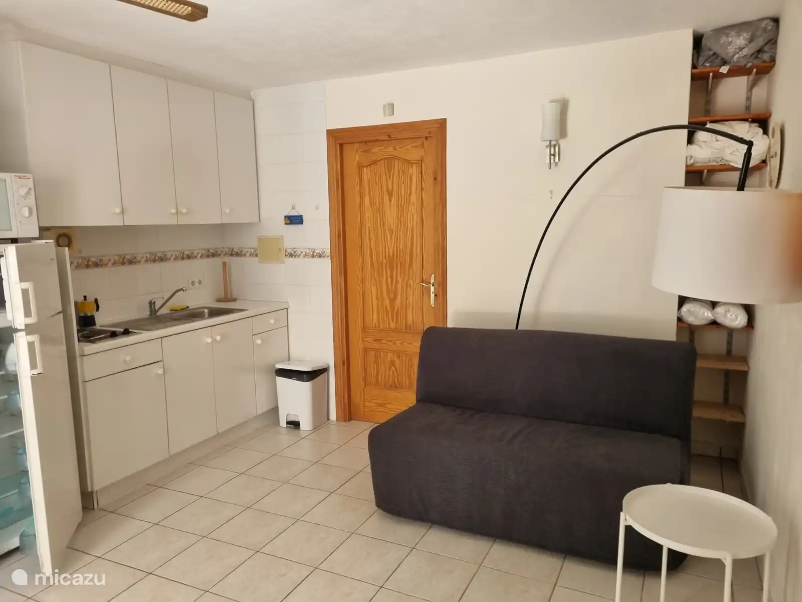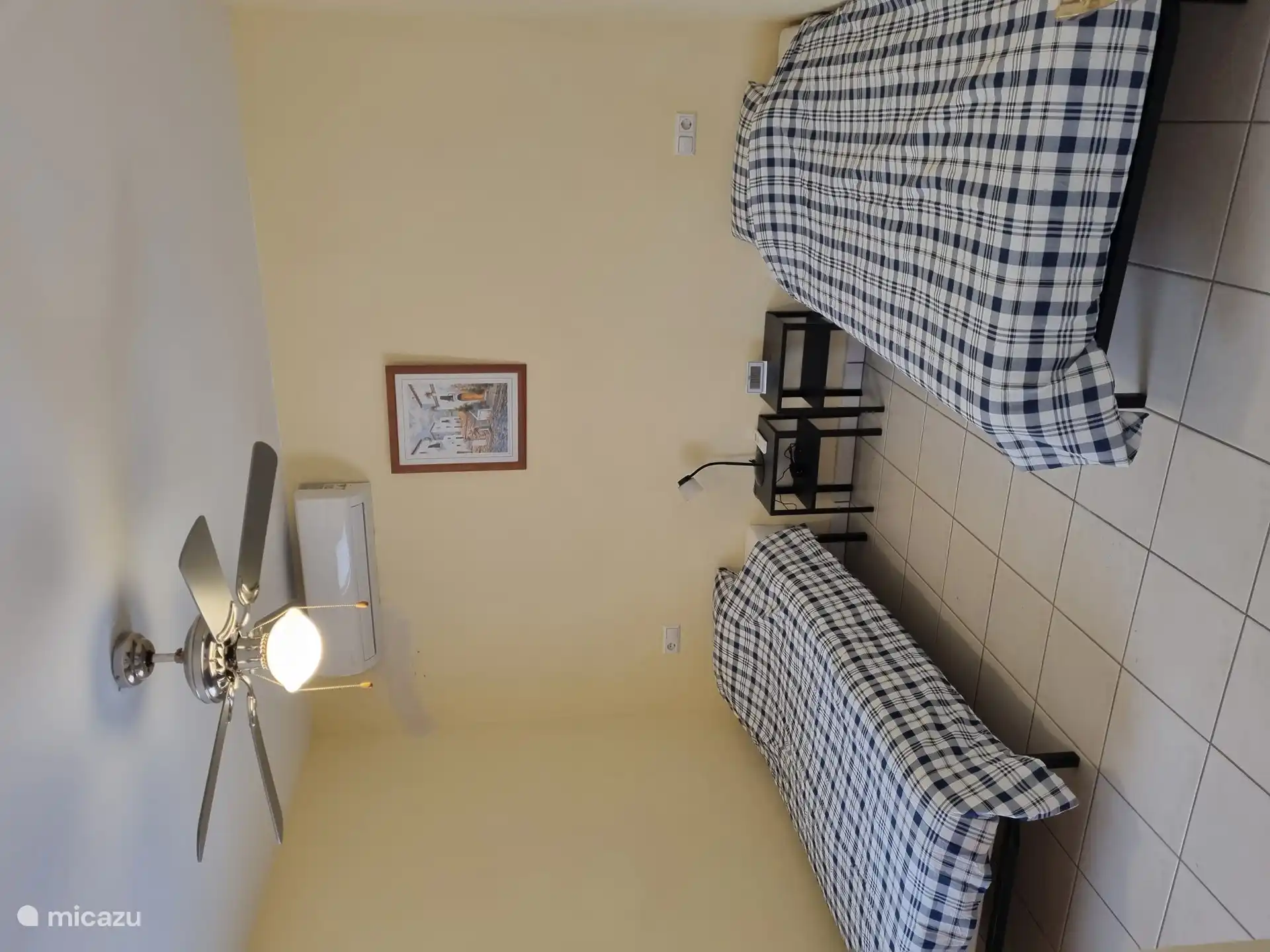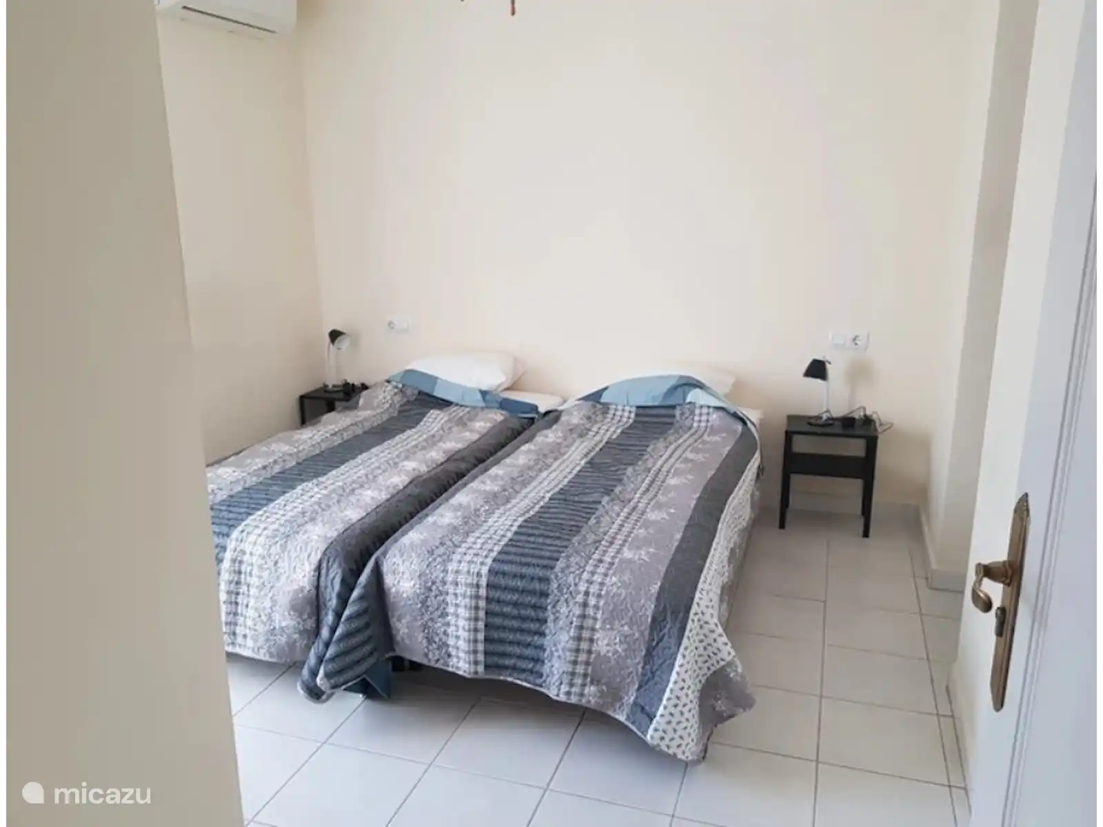 En la planta baja hay una sala de estar más pequeña con una pequeña cocina con una nevera grande y un microondas. El baño es espacioso y tiene lavabo, ducha e inodoro. Los dormitorios 3 y 4 tienen 2 camas individuales y están equipados con aire acondicionado. Todas las camas son de tamaño 90x200cm. Desde la sala de estar se llega al jardín a través de puertas francesas.
