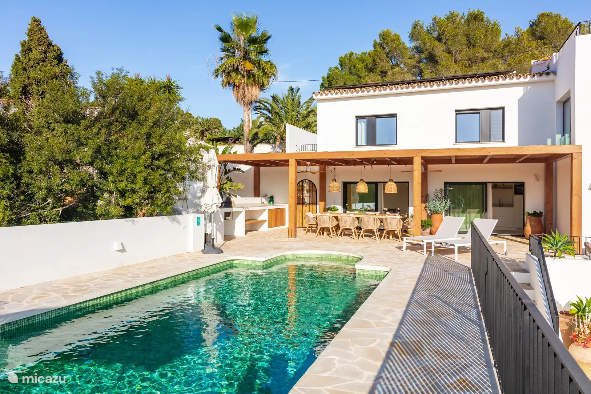 Villa Faisán es una hermosa villa para 8 personas ubicada en Moraira en la Costa Blanca. Debido a las 2 plantas, esta casa es ideal para pasar unas maravillosas vacaciones en familia o con amigos. En el gran jardín hay una hermosa piscina. La villa está totalmente equipada y cuenta con una mesa de ping-pong, un poste de baloncesto y algunos equipos de fitness para que la estancia sea también atractiva para familias con adolescentes. Por la noche es delicioso comer y sentarse junto a la cocina al aire libre recién construida.