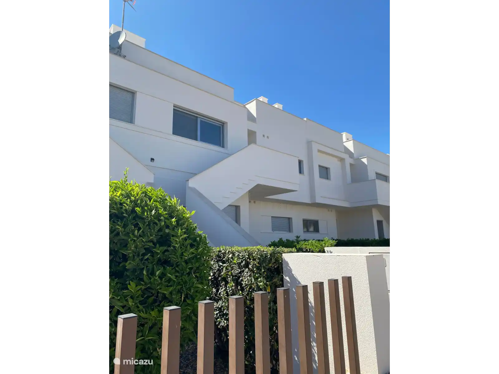 - 2 terrazas, la primera (20 m²) con vistas al jardín, equipada con mesa de comedor, sillas y toldo eléctrico. La azotea (55 m²) con pérgola, salón, 4 tumbonas y mesa de comedor con sillas.