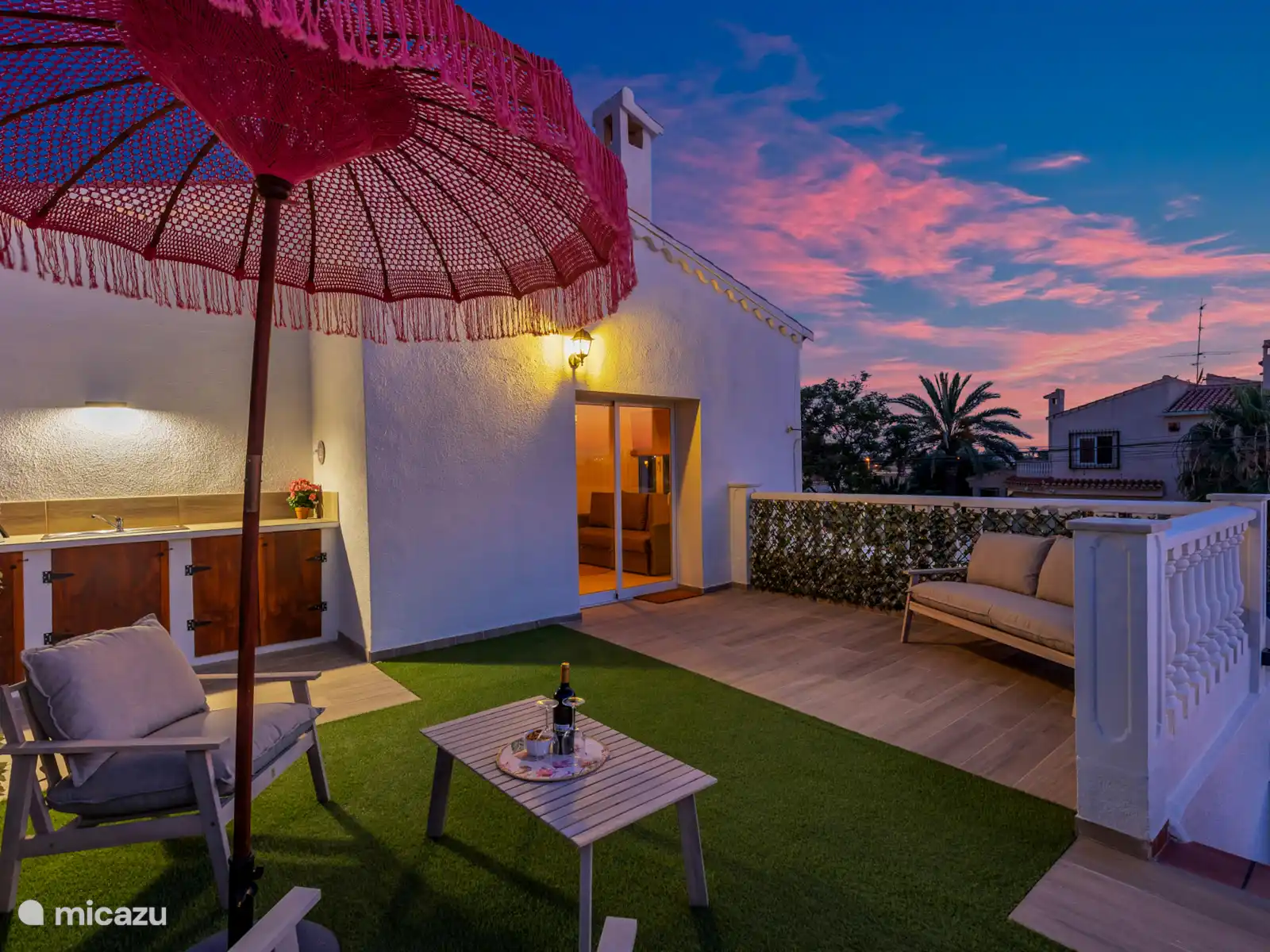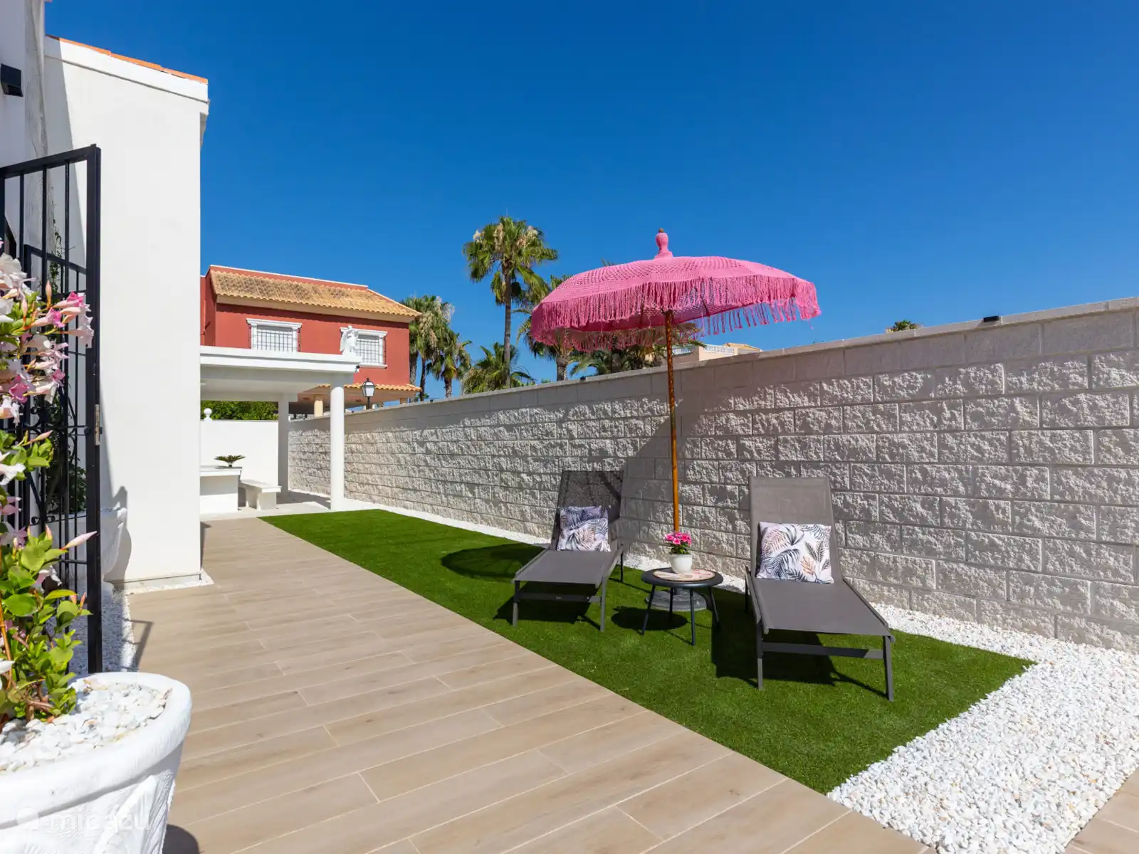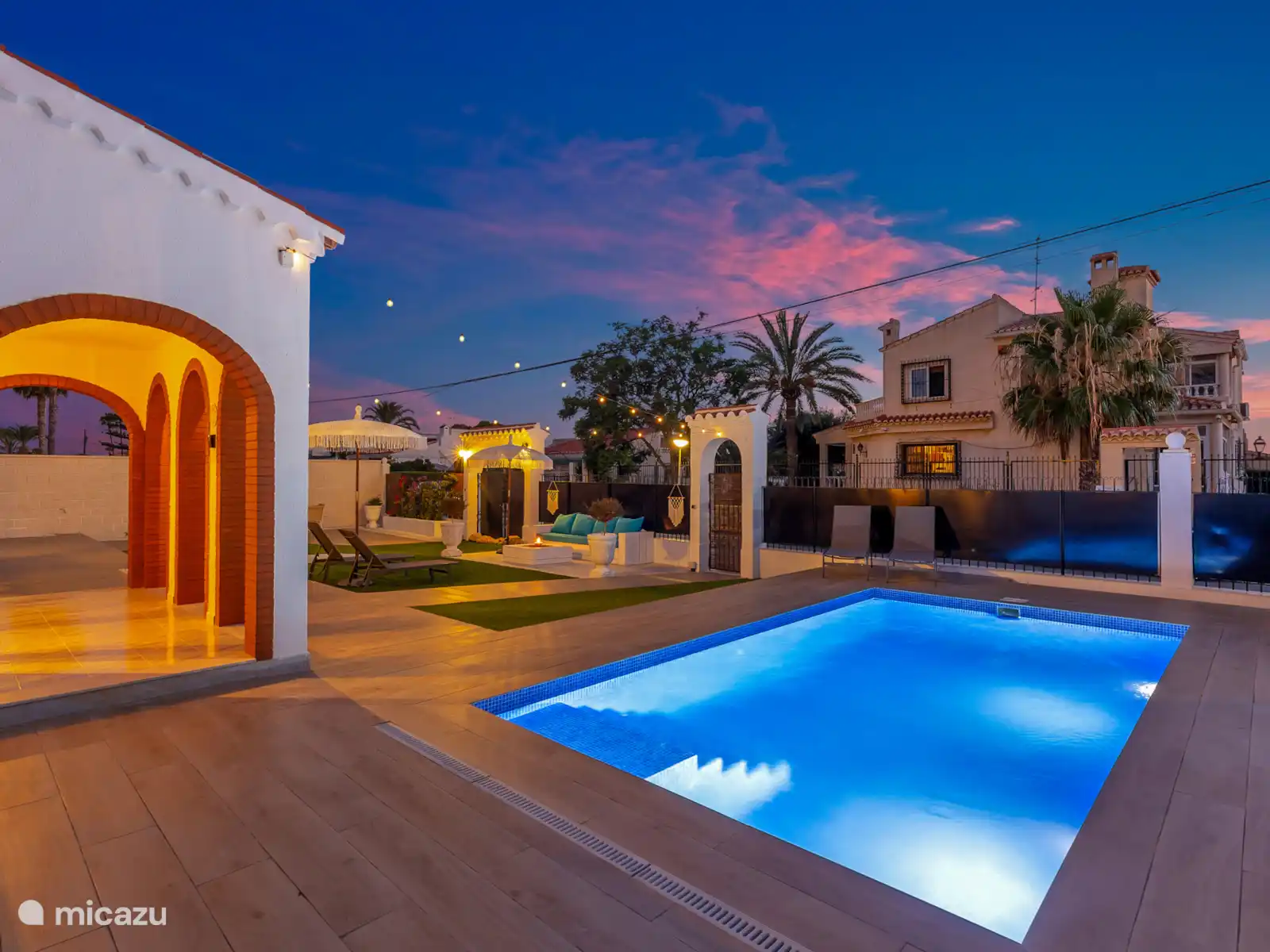 El gran jardín de Villa Mida (410 m2) es un oasis de paz y confort, con una piscina privada nueva como centro de mesa radiante. Tanto en la parte delantera como en la trasera de la casa encontrarás amplios espacios exteriores iluminados, perfectos para relajarse o disfrutar juntos. Equipado con tumbonas, zonas de descanso y dos atractivas zonas de comedor, una cocina exterior y una terraza soleada en la azotea con otra zona de barbacoa, siempre hay un lugar al sol desde temprano por la mañana hasta tarde por la noche. Ideal para largas noches de verano, barbacoas acogedoras y la sensación definitiva de vacaciones bajo el sol español.