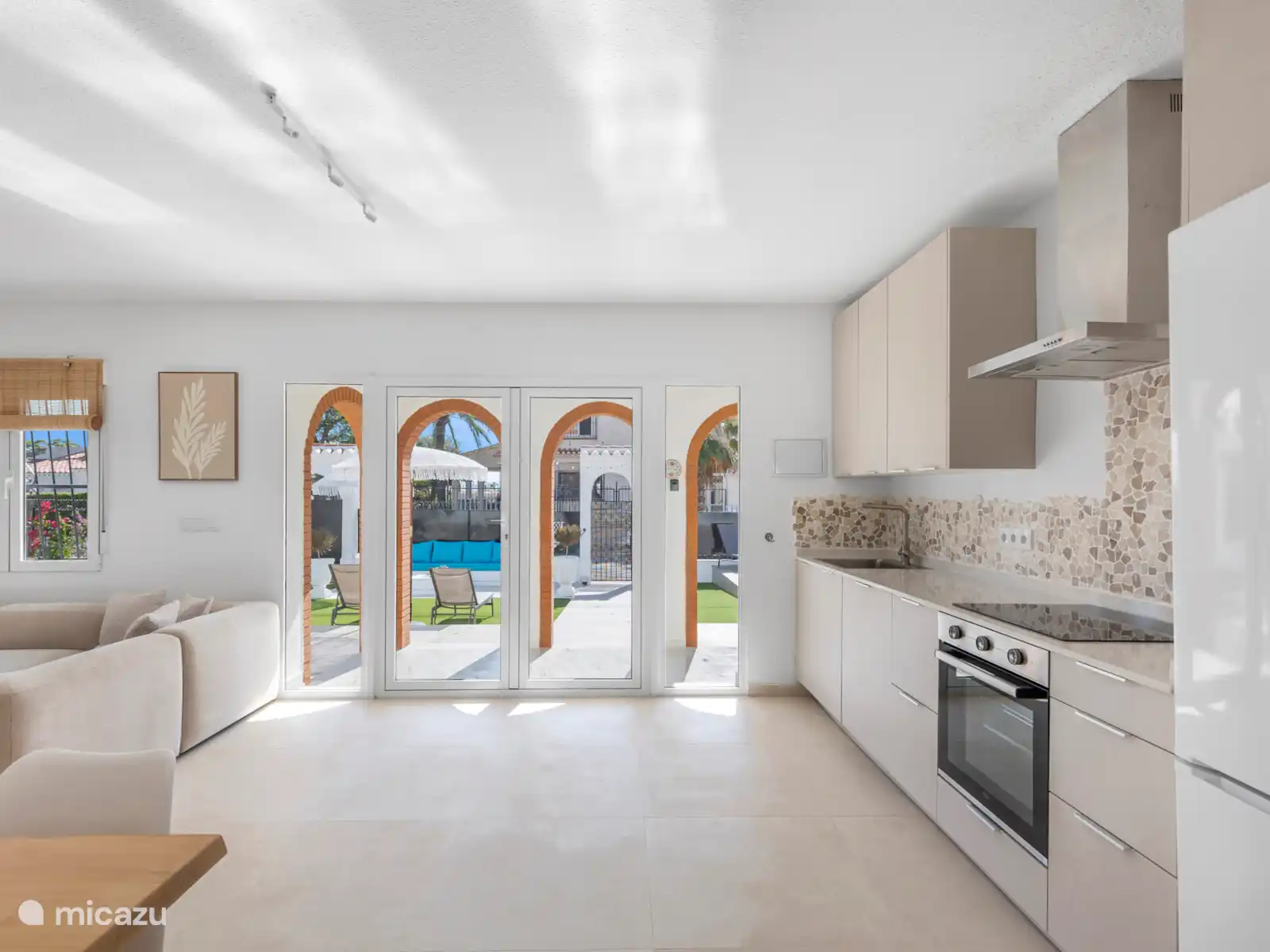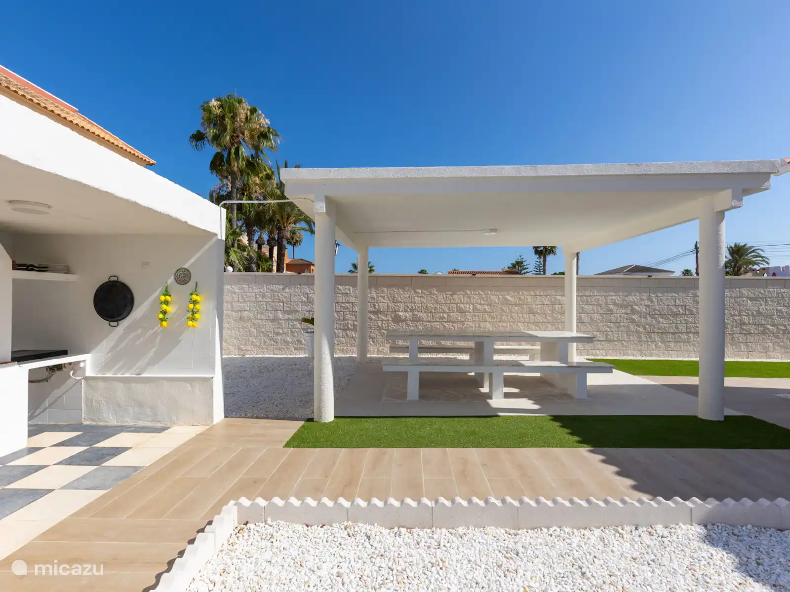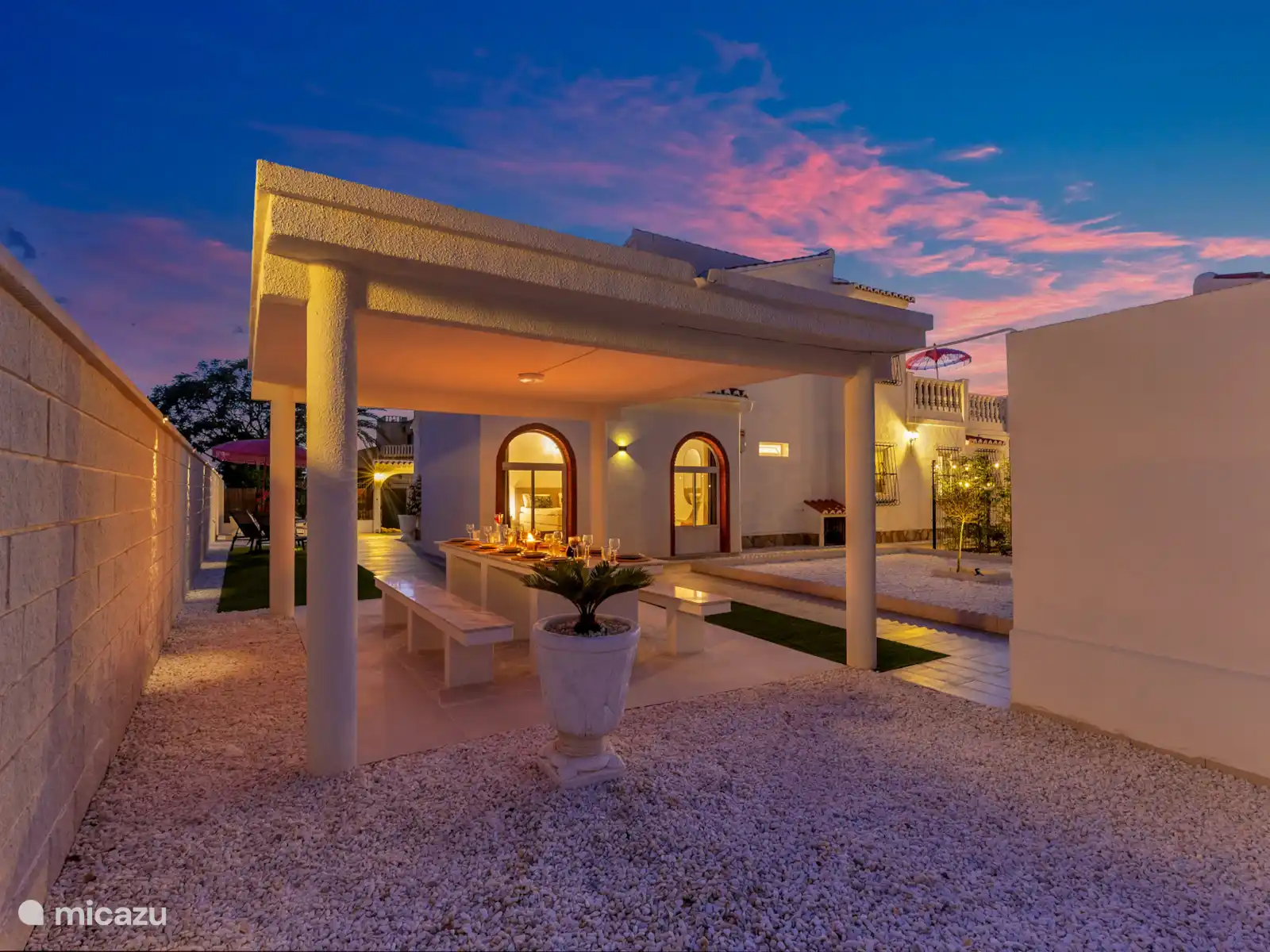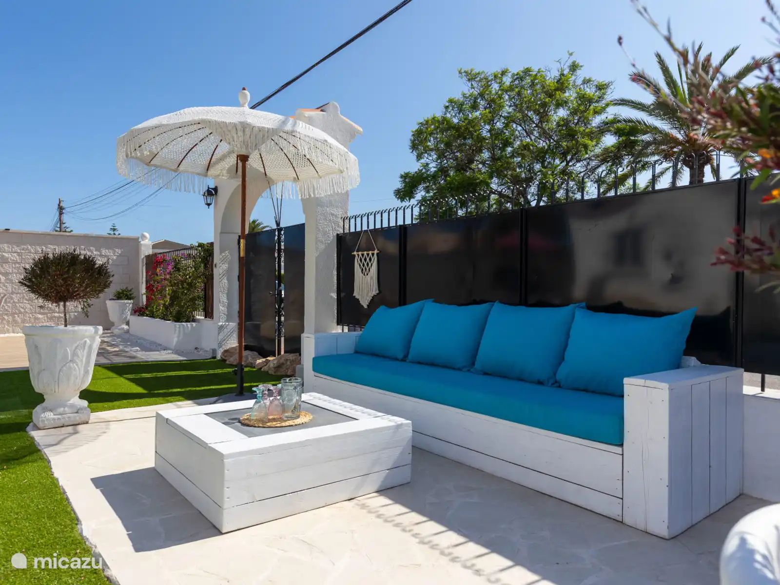 El gran jardín de Villa Mida (410 m2) es un oasis de paz y confort, con una piscina privada nueva como centro de mesa radiante. Tanto en la parte delantera como en la trasera de la casa encontrarás amplios espacios exteriores iluminados, perfectos para relajarse o disfrutar juntos. Equipado con tumbonas, zonas de descanso y dos atractivas zonas de comedor, una cocina exterior y una terraza soleada en la azotea con otra zona de barbacoa, siempre hay un lugar al sol desde temprano por la mañana hasta tarde por la noche. Ideal para largas noches de verano, barbacoas acogedoras y la sensación definitiva de vacaciones bajo el sol español.