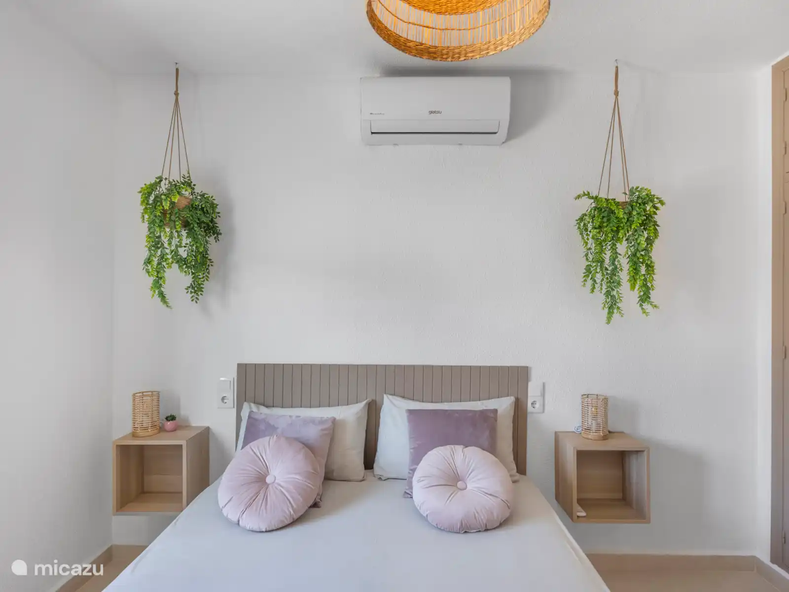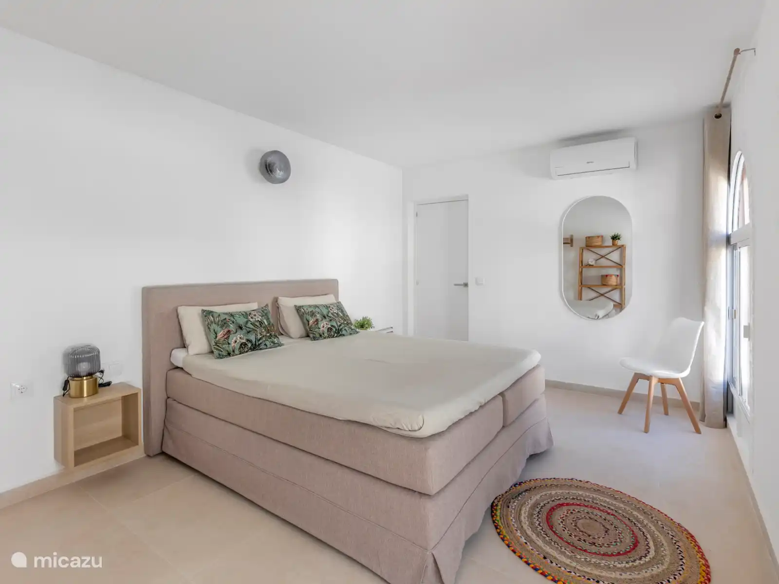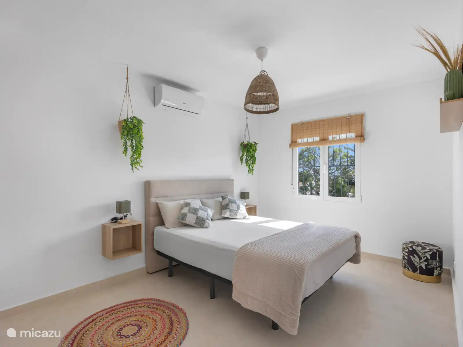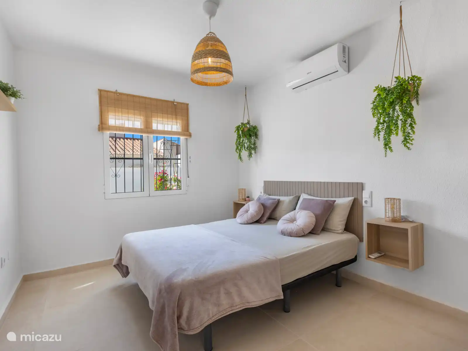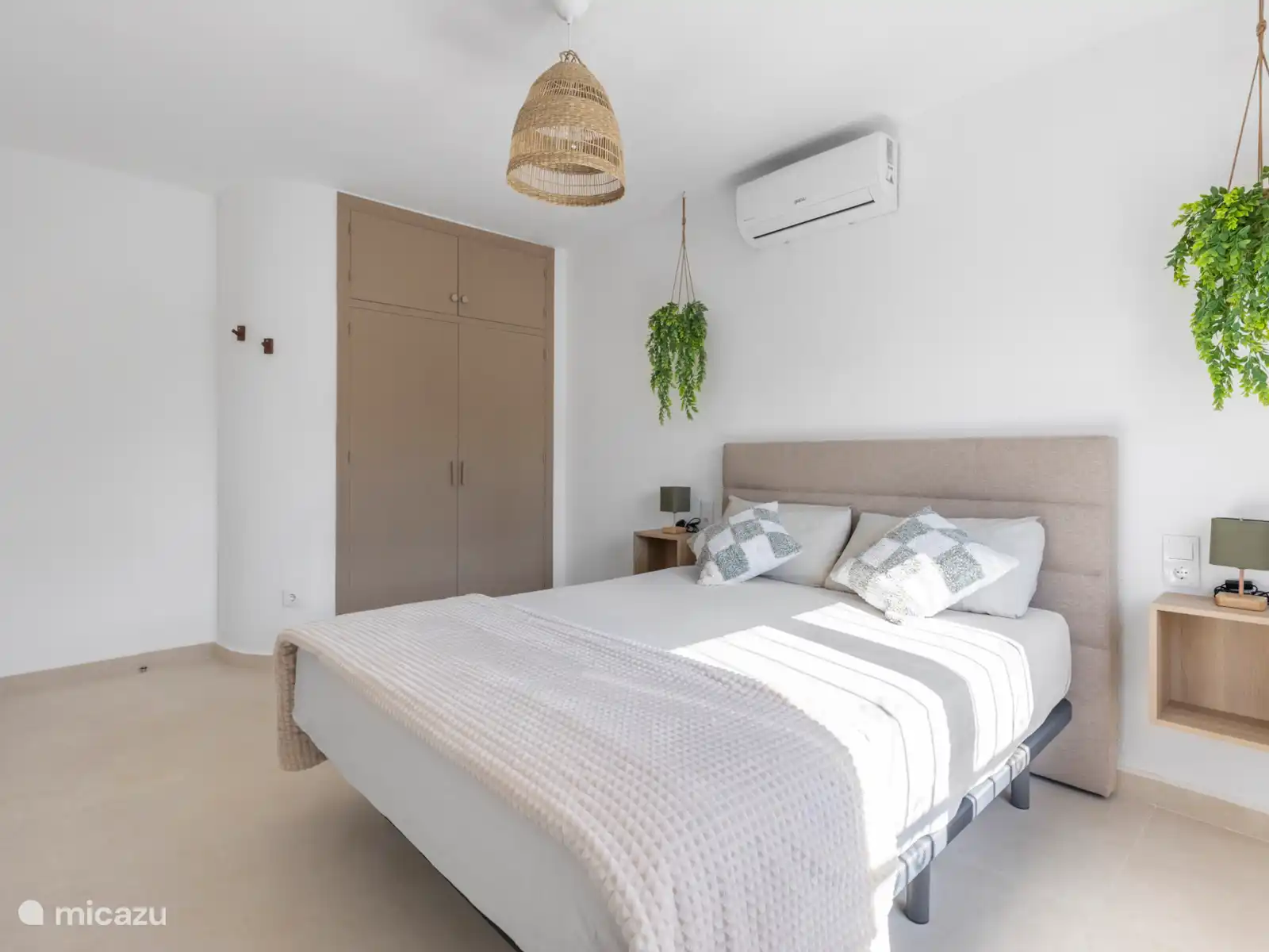 El dormitorio 3 es flexible y espacioso, equipado con una cama matrimonial con colchones independientes y una cama individual extra. Ideal para una familia o tres amigos.