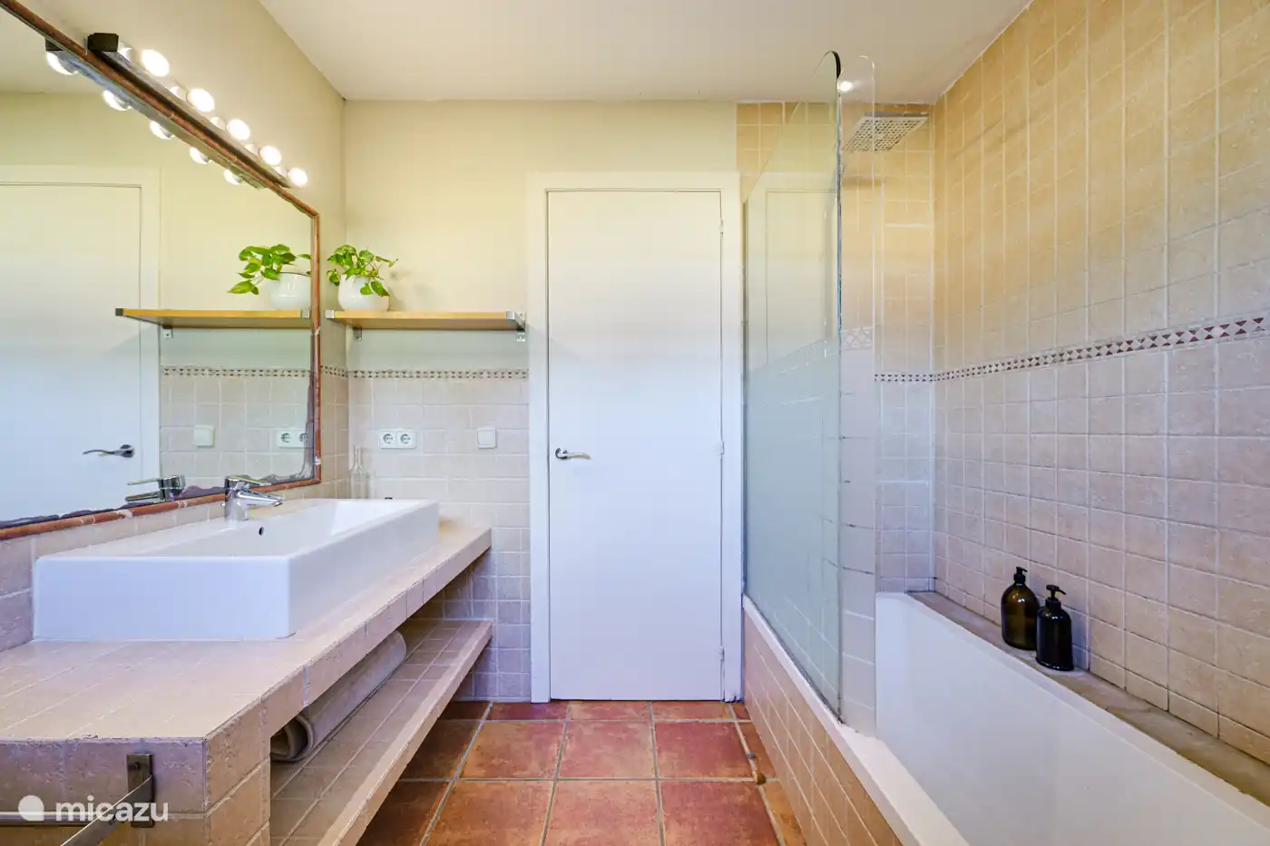 In the bathroom you will find the washing area with washing machine and dryer.