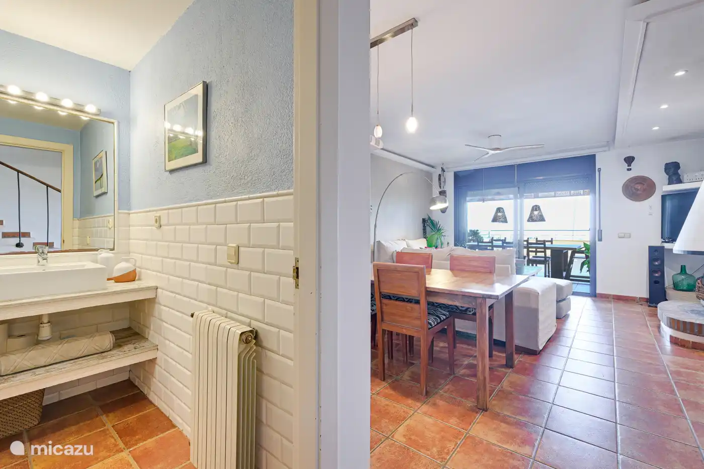 On the main floor you will find the cozy living room with TV and direct access to the magnificent front terrace with porch and outdoor table. Enjoy the sea views while having breakfast!