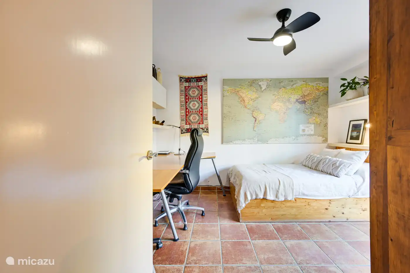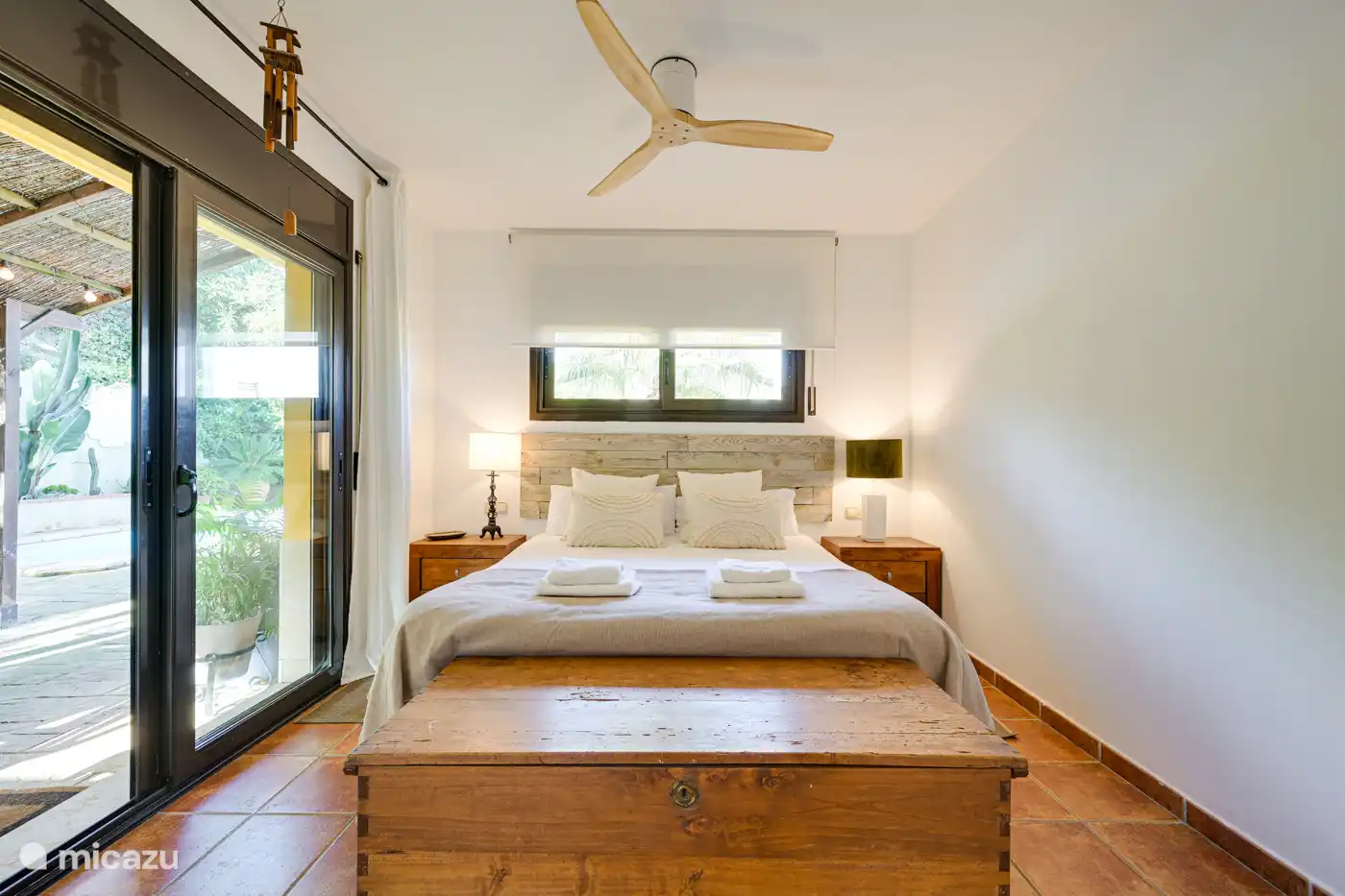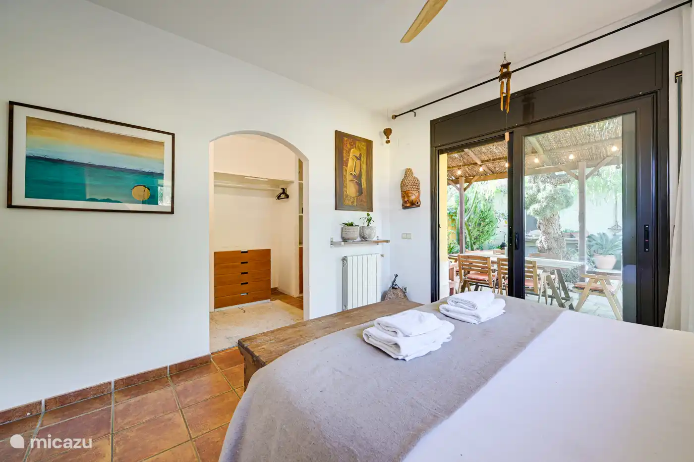 - Master bedroom with double bed (160cm), dressing room and direct access to the terrace and pool area.