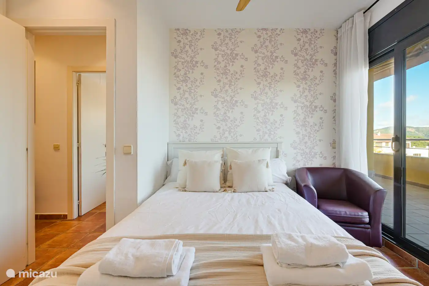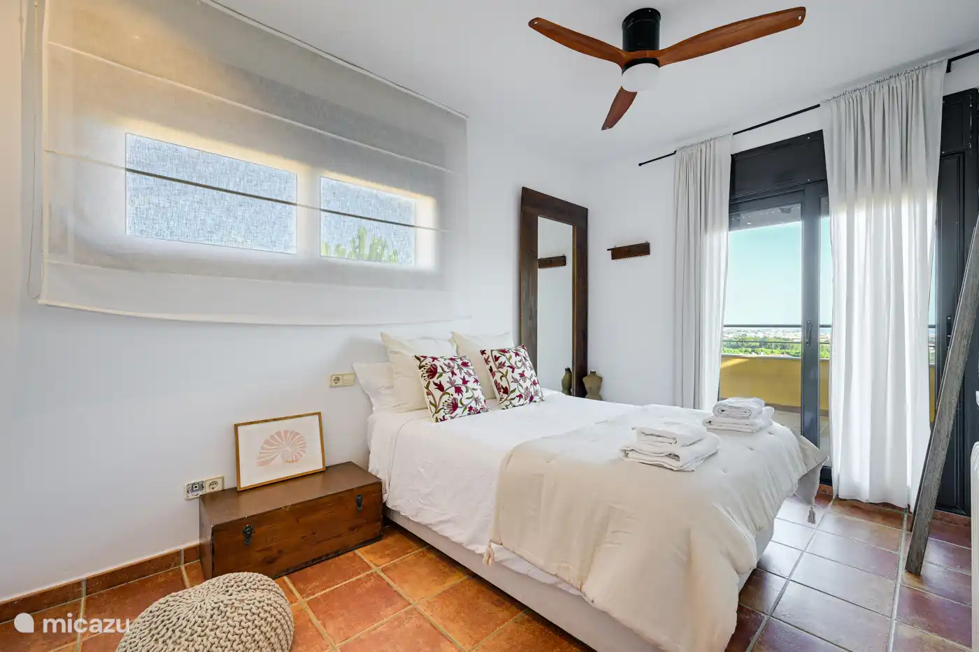 - 2 more double bedrooms, each with double bed (140cm). Both bedrooms have access to the balcony with sea views.