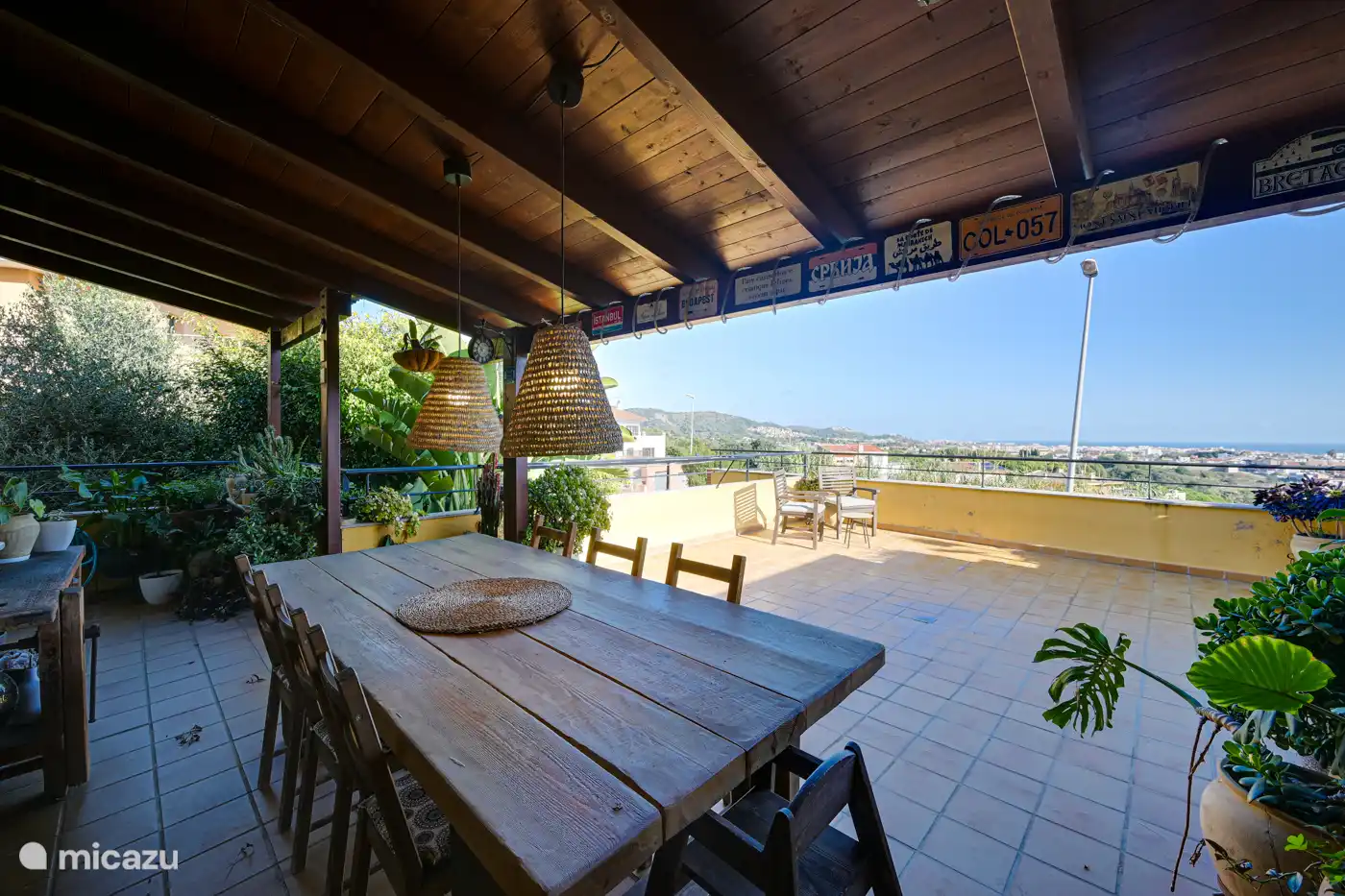 It is characterized by its decoration with restored rustic furniture and an outdoor space full of beautiful plants, private pool, two porches and sea views.