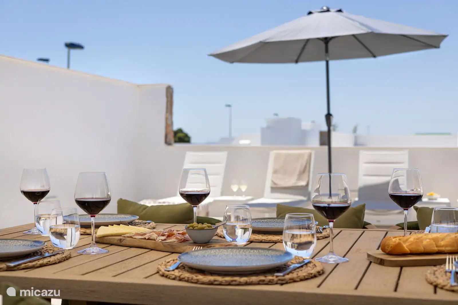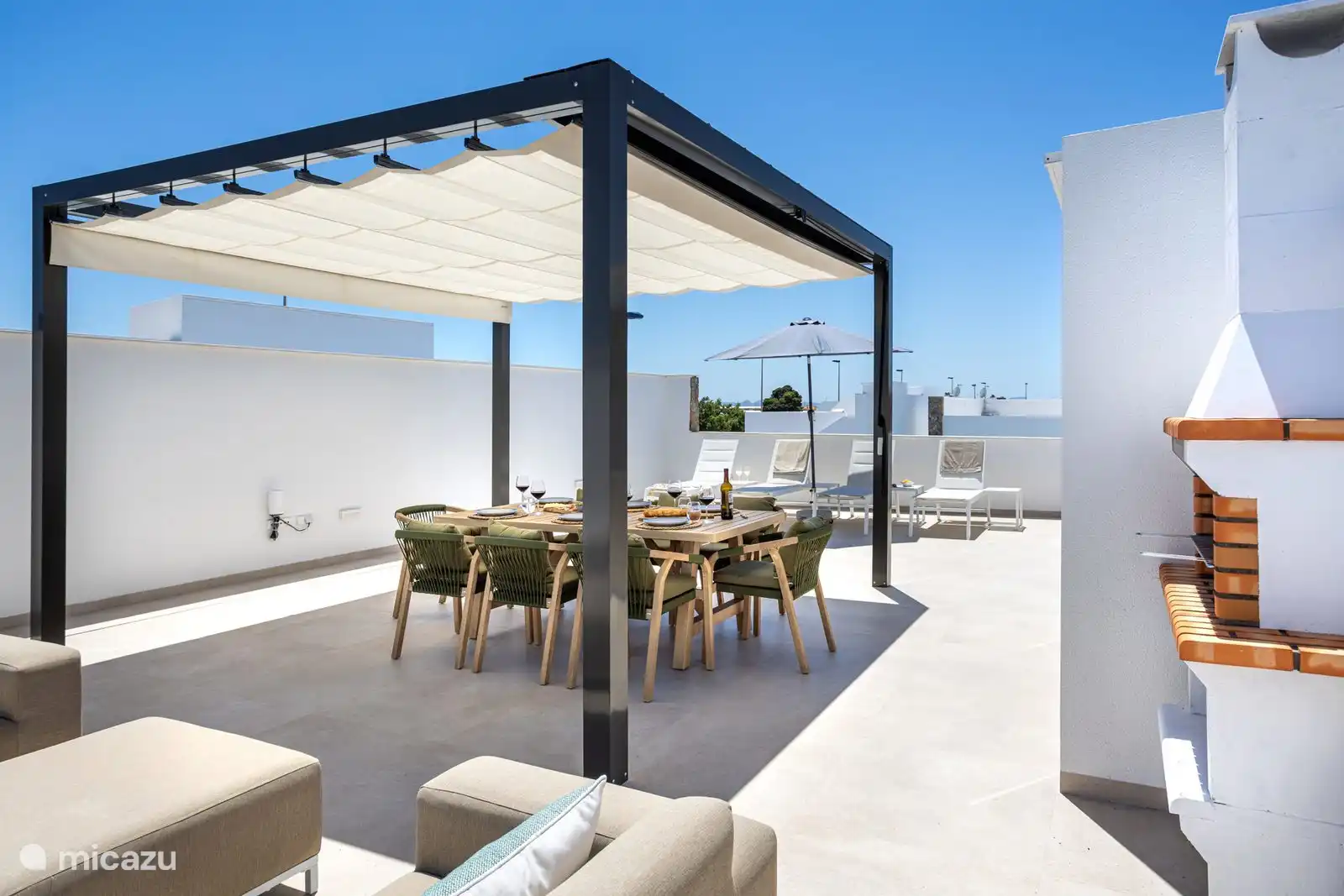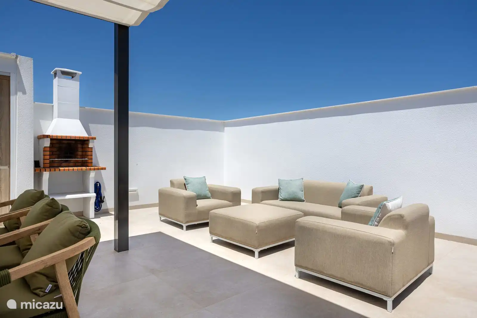 Aprovecha al máximo la terraza de la azotea y toma el sol con una bebida fría de la nevera. La cocina exterior totalmente equipada con nevera, congelador, lavavajillas, vasos, platos y cubiertos le permite disfrutar aún más de la vida española.