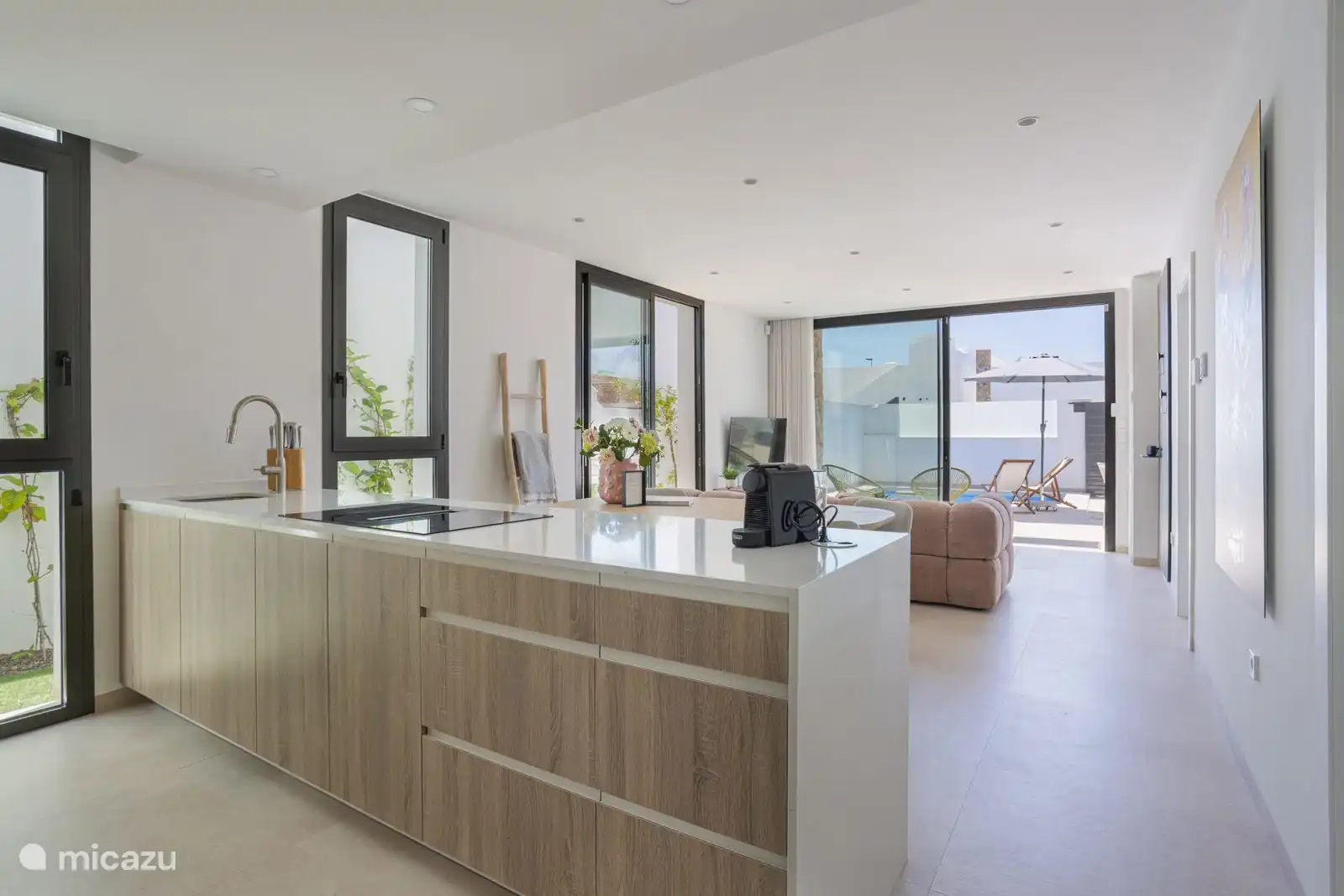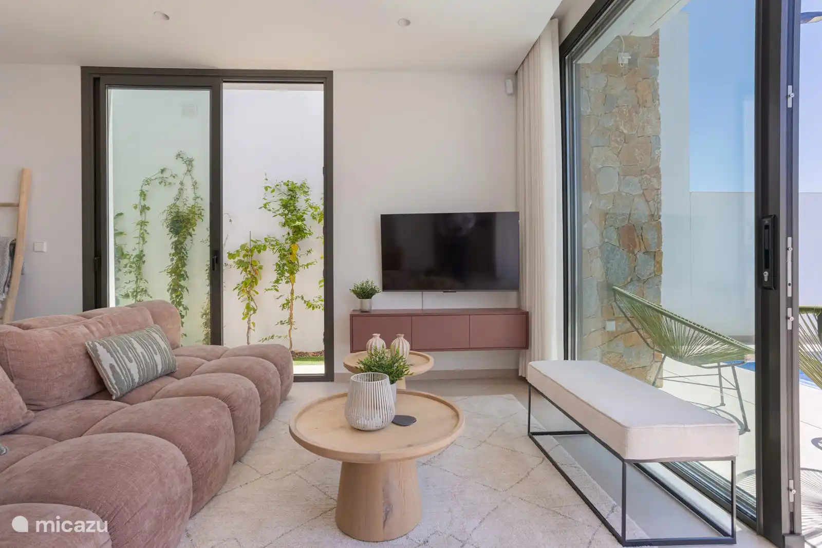Esta villa elegantemente decorada tiene 3 dormitorios, 2 baños de lujo y una hermosa sala de estar con vistas a la piscina. La moderna cocina hace que su estancia sea aún más cómoda. Desde el luminoso salón se accede al jardín cerrado a través de la gran puerta corredera donde se puede disfrutar de la piscina, cenar o relajarse.