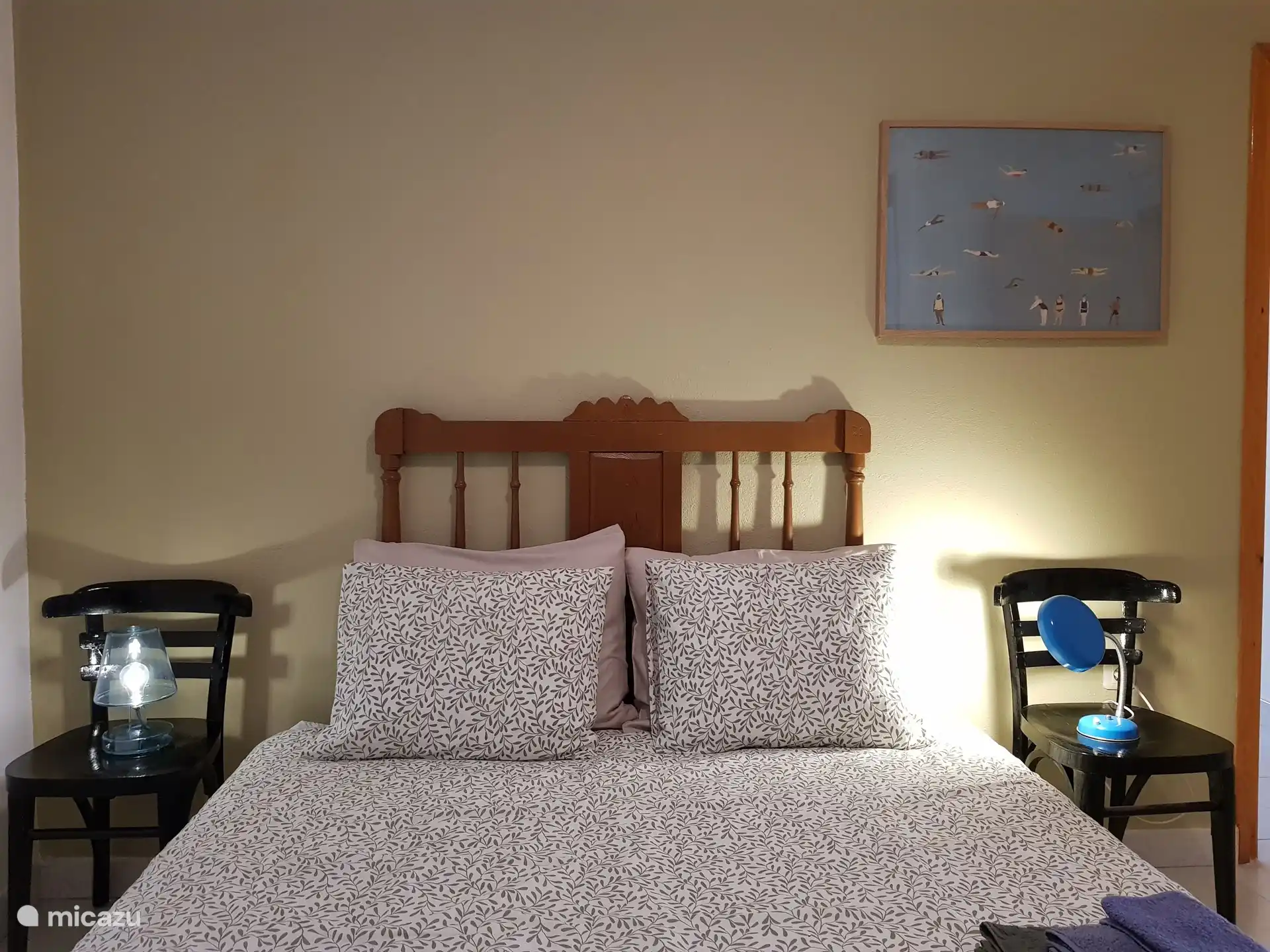 El dormitorio, con mucha privacidad, tiene una cómoda cama para 2 personas, hecha con sábanas limpias. El patio de luz proporciona luz natural y aire fresco.