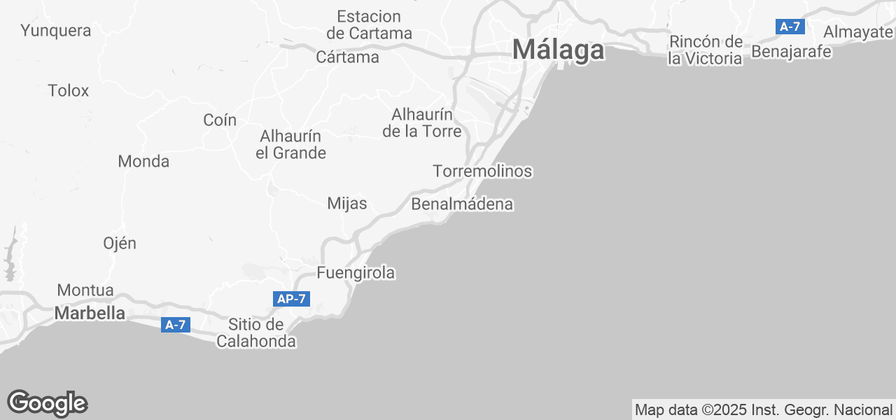 Desde el aeropuerto, siga las indicaciones hacia la autopista A-7 / MA-20, luego tome la salida hacia Benalmádena / Arroyo de la Miel. Siga las indicaciones hacia el centro de Benalmádena y navegue hasta su dirección.