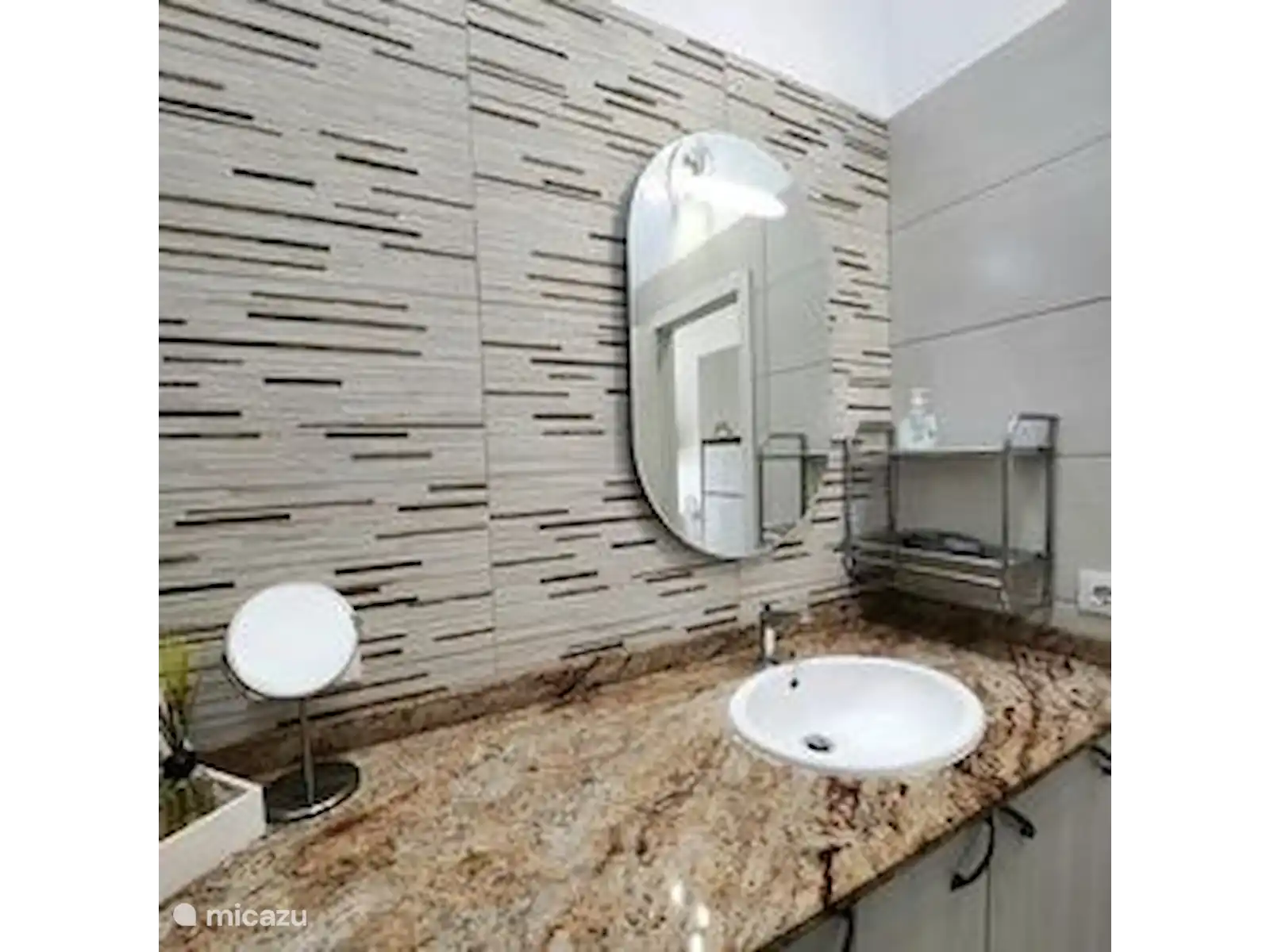 Hay una sombrilla disponible, así como un escurridero en la pared.