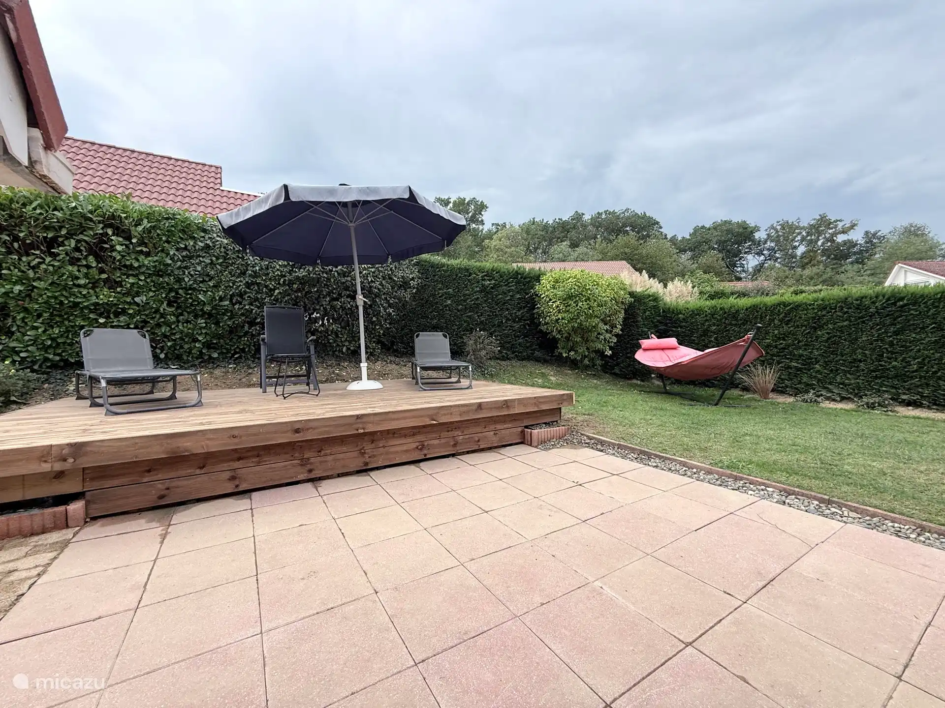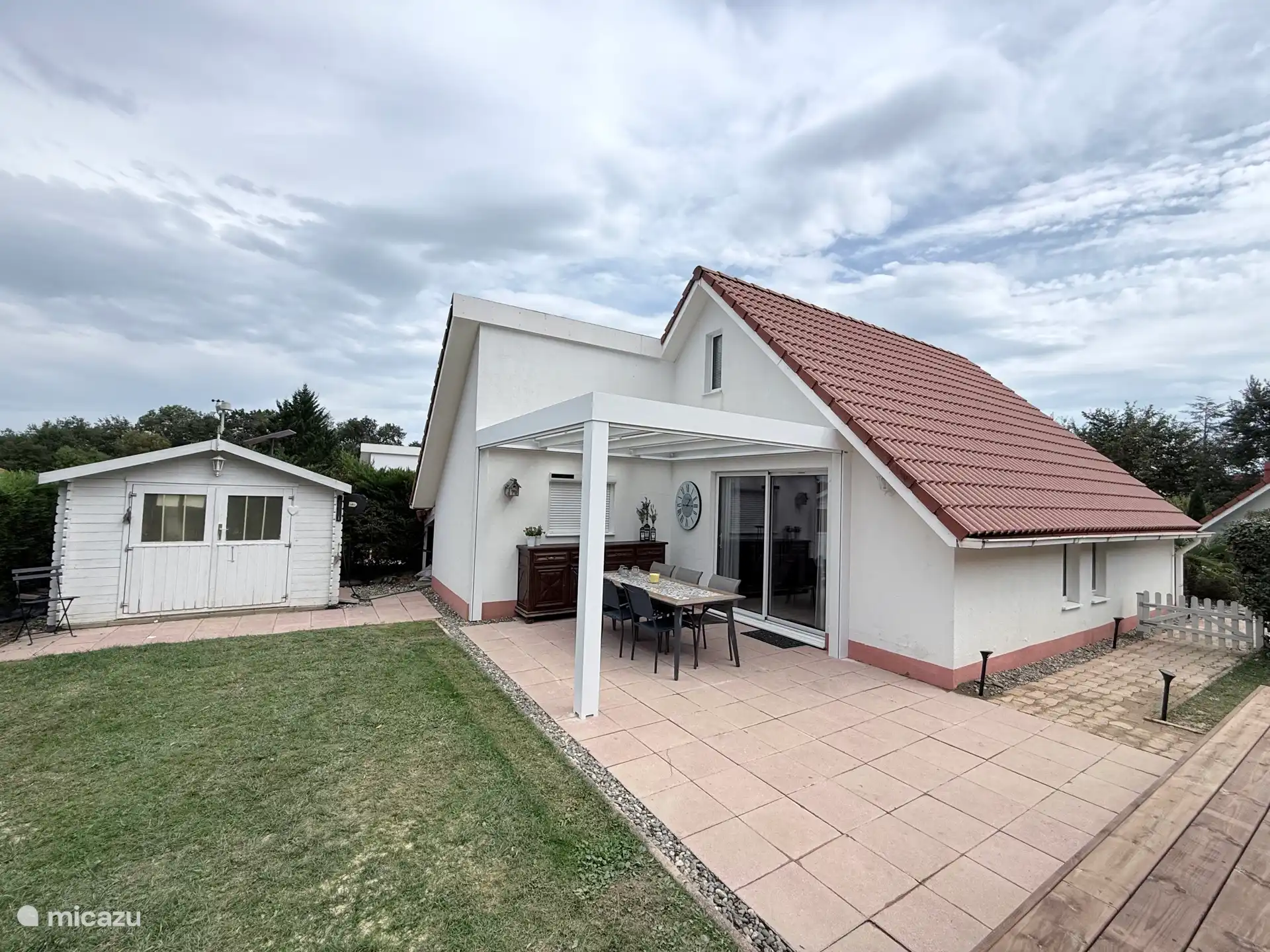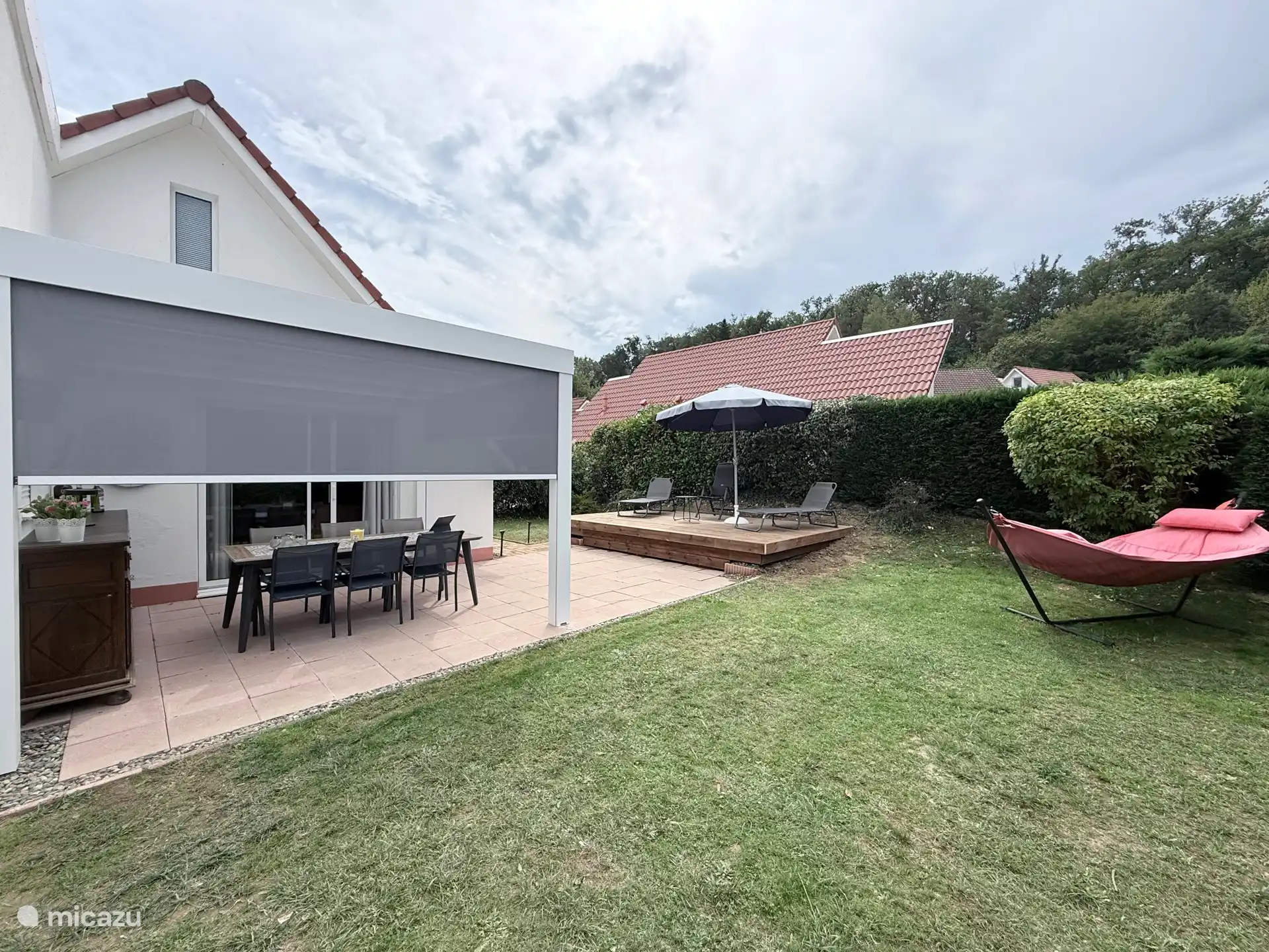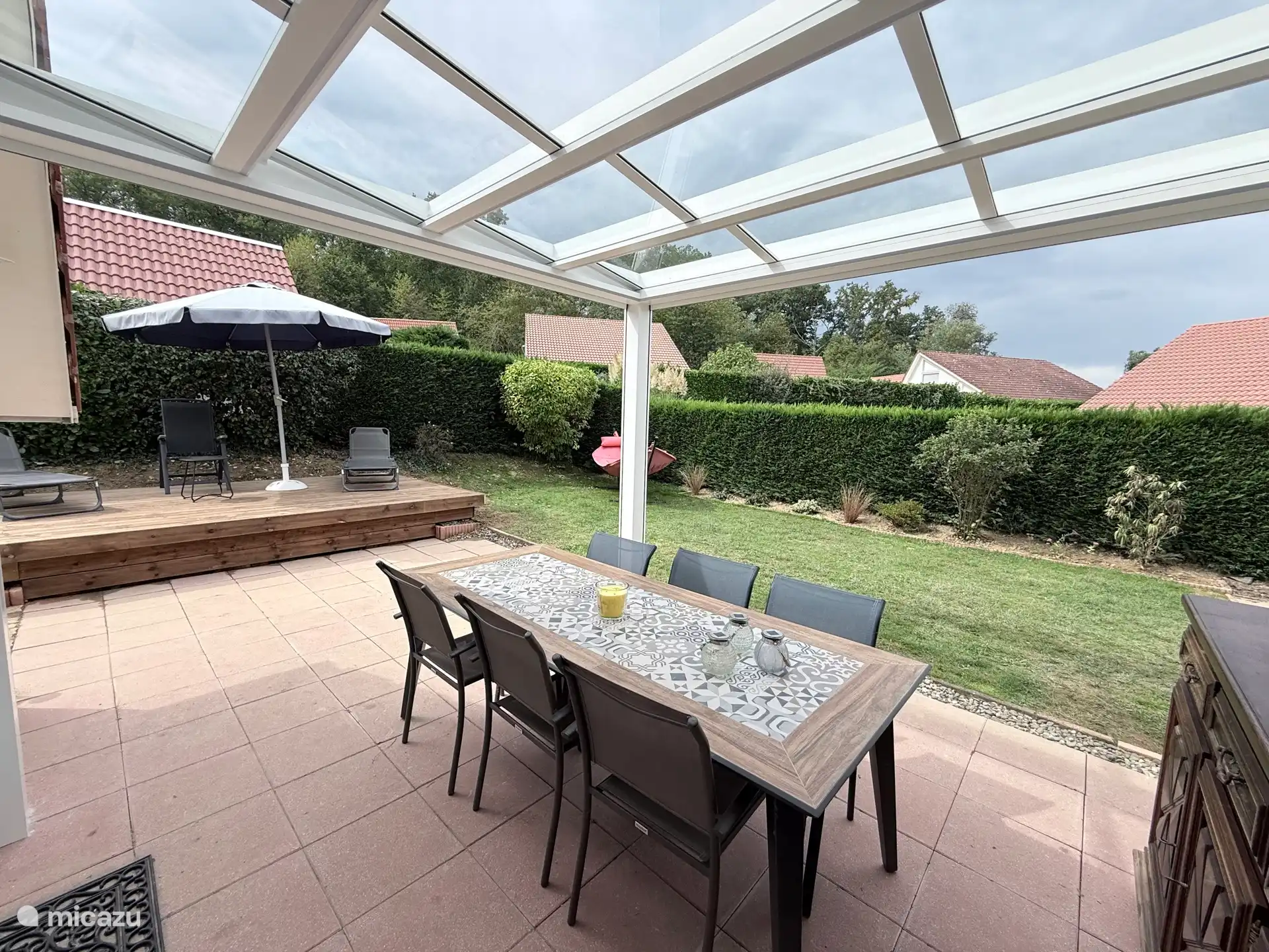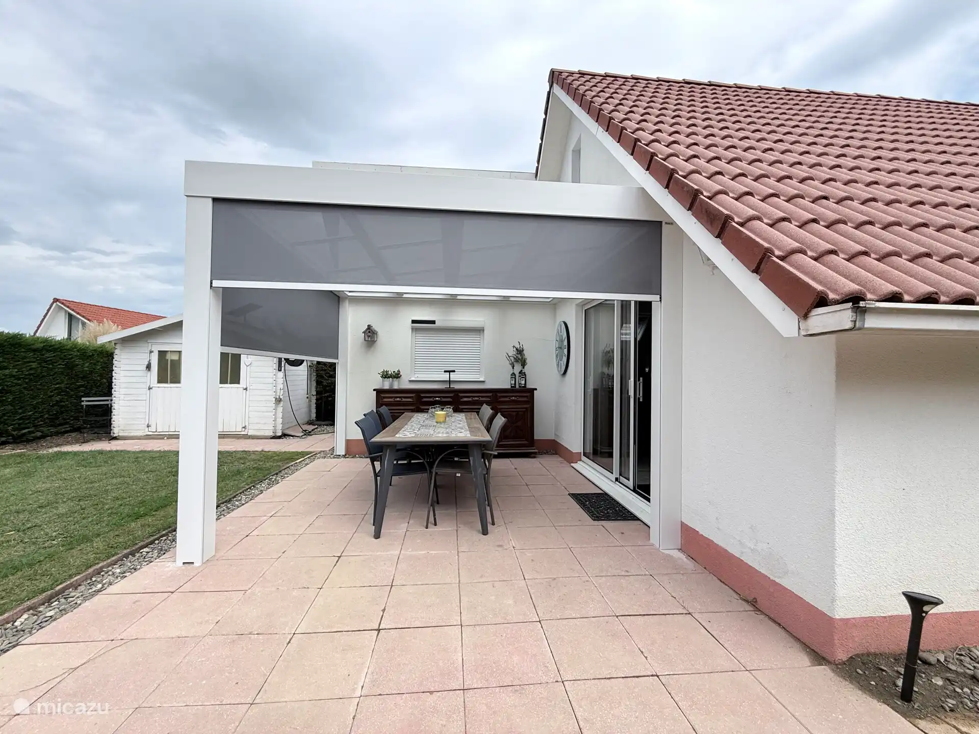 El jardín tiene una terraza separada y debajo de la terraza cerrada también puede sentarse afuera si hace mal tiempo.