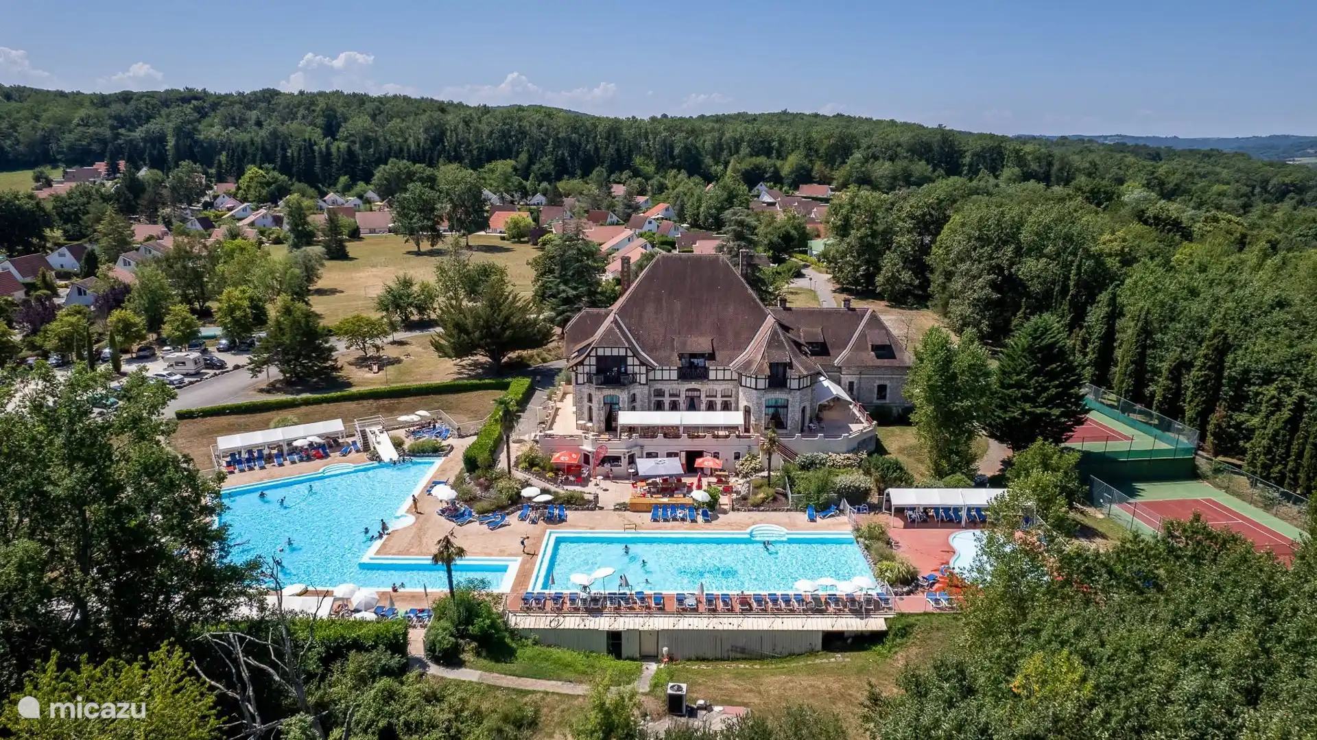 El castillo, las piscinas y las pistas de tenis están a muy pocos pasos.
