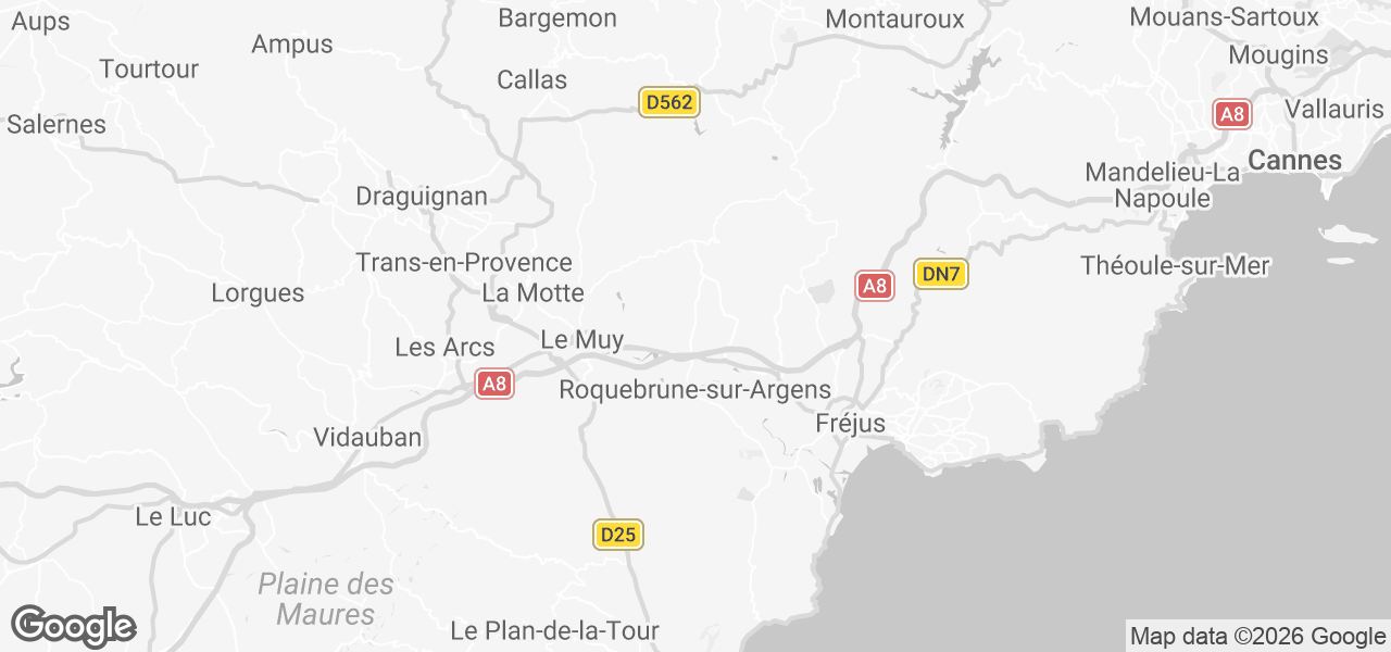 Ubicación conveniente a 12 km de la costa y cerca de varias ciudades como Saint Tropez (37 km), Niza (70 km) y Mónaco (93 km) y a 40 km de la conocida ruta napoleónica.