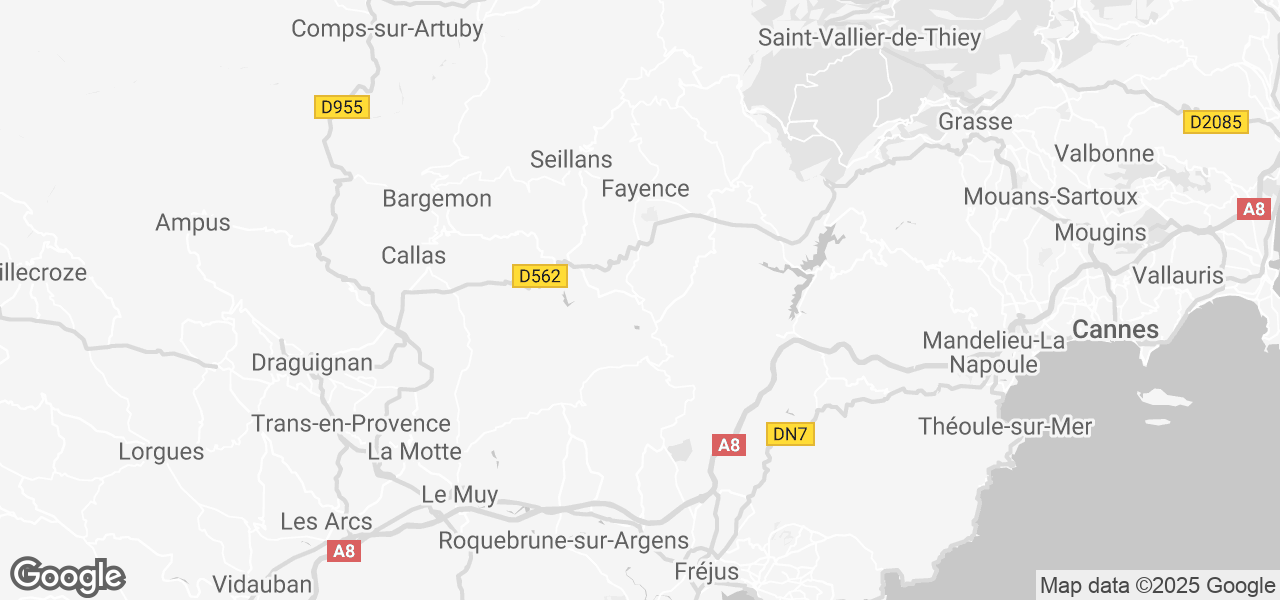 Muchos viñedos locales y los pueblos de Fayence, Callian, etc., con sus mercados animados, están cerca.