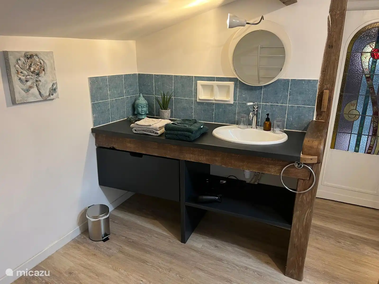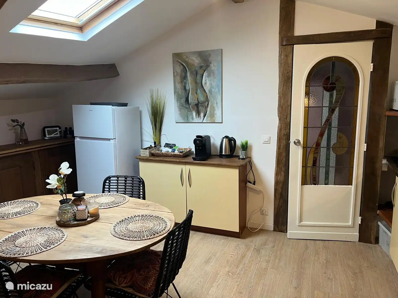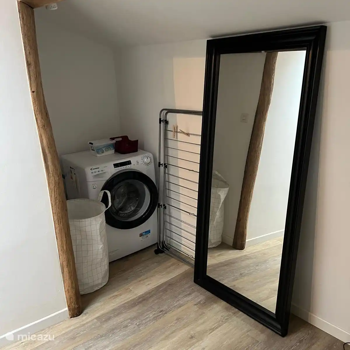 El apartamento está situado en la primera planta y cuenta con una amplia entrada privada a través de una escalera de fácil acceso. El apartamento tiene un baño espacioso con una gran ducha a nivel de correo. La cocina abierta con comedor está conectada a la zona de estar, que se encuentra junto al dormitorio. En el apartamento, la altura de altura tampoco es la misma en todas partes. Hay lavadora disponible en el apartamento para que puedas encargarte de la colada mientras tanto. En el jardín frente al apartamento tienes acceso a una terraza privada con salón y parasol.