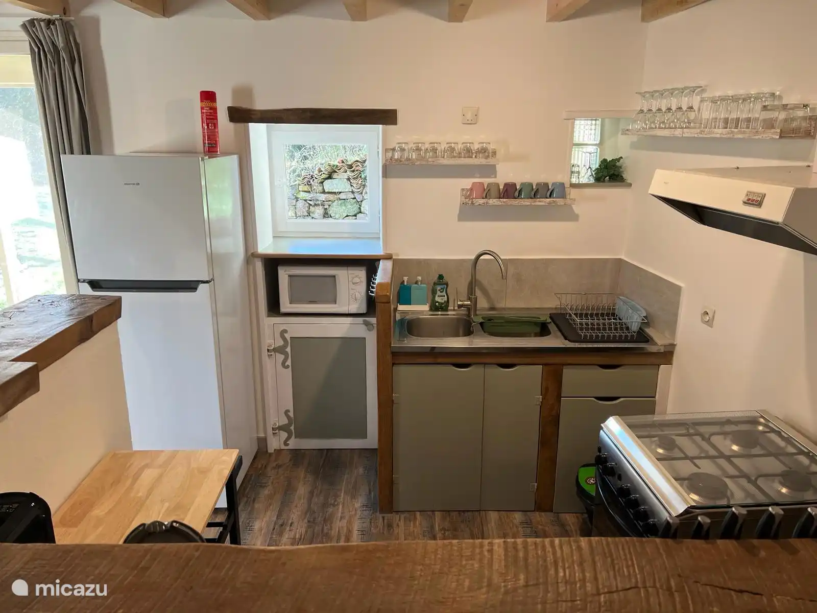 El gite está situado en la esquina del edificio con entrada/salida privada. Cuenta con una zona de estar con cocina en la planta baja con acceso a la terraza privada y conecta con el jardín. El dormitorio, el baño y el baño están arriba (la altura para la altura no es la misma en todas partes) y son accesibles por una escalera (algo empinada). La lavadora está disponible en el geste para que puedas encargarte de la colada mientras tanto.