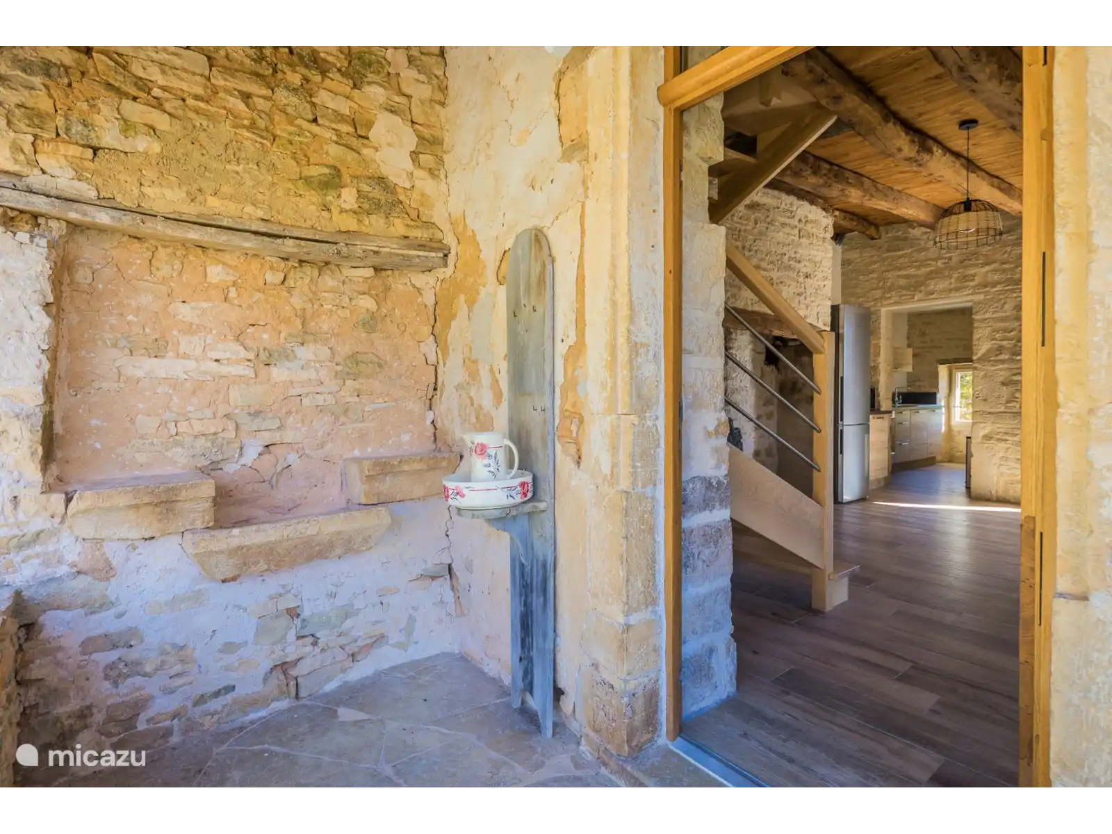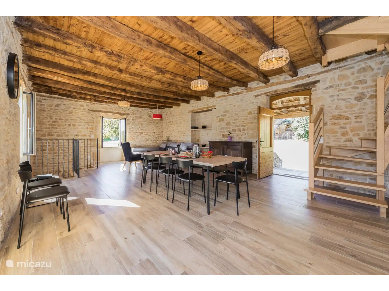 Con una superficie habitable de aproximadamente 160 m², la casa ofrece mucho espacio y comodidad. En la planta baja hay una encantadora cocina abierta al salón. Las paredes de piedra natural, las vigas antiguas y la chimenea original crean un ambiente cálido y auténtico, mientras que los electrodomésticos modernos satisfacen todas las necesidades contemporáneas.