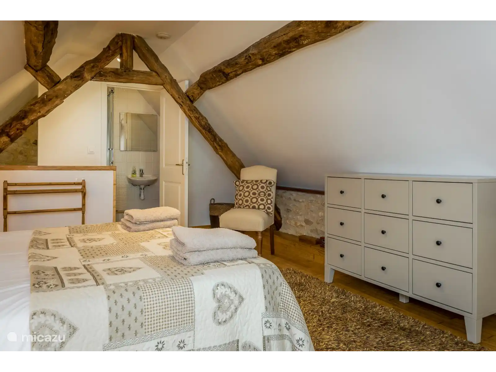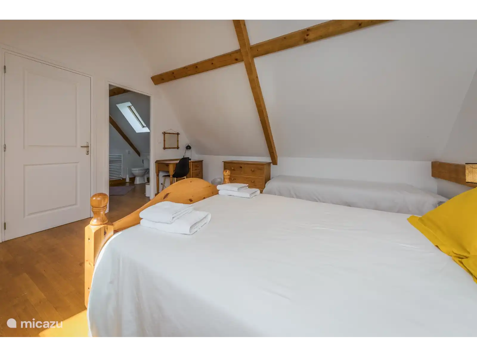 Découverte tiene 4 dormitorios, divididos entre la casa principal y el anexo. En la casa principal encontrarás dos dormitorios espaciosos con camas dobles y una cama individual adicional, ideal para familias.