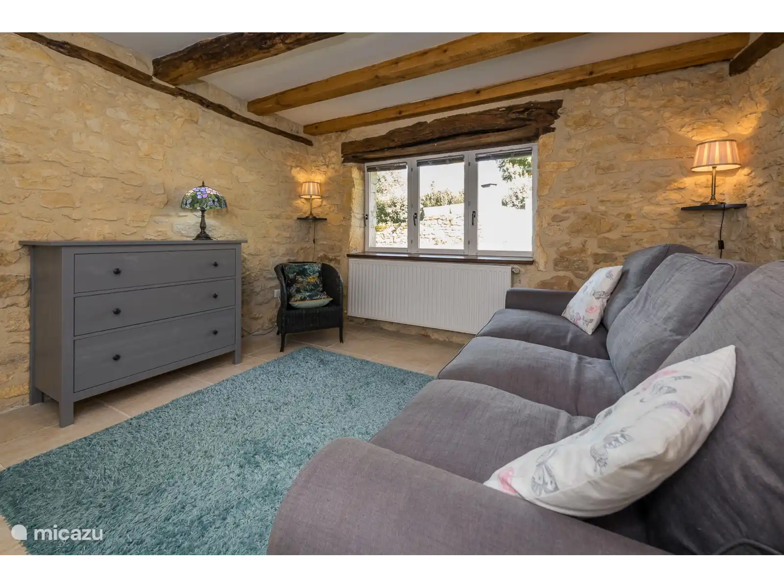 En el anexo junto a la piscina hay dos dormitorios más: arriba una cómoda habitación doble y abajo un dormitorio con un amplio sofá cama doble.