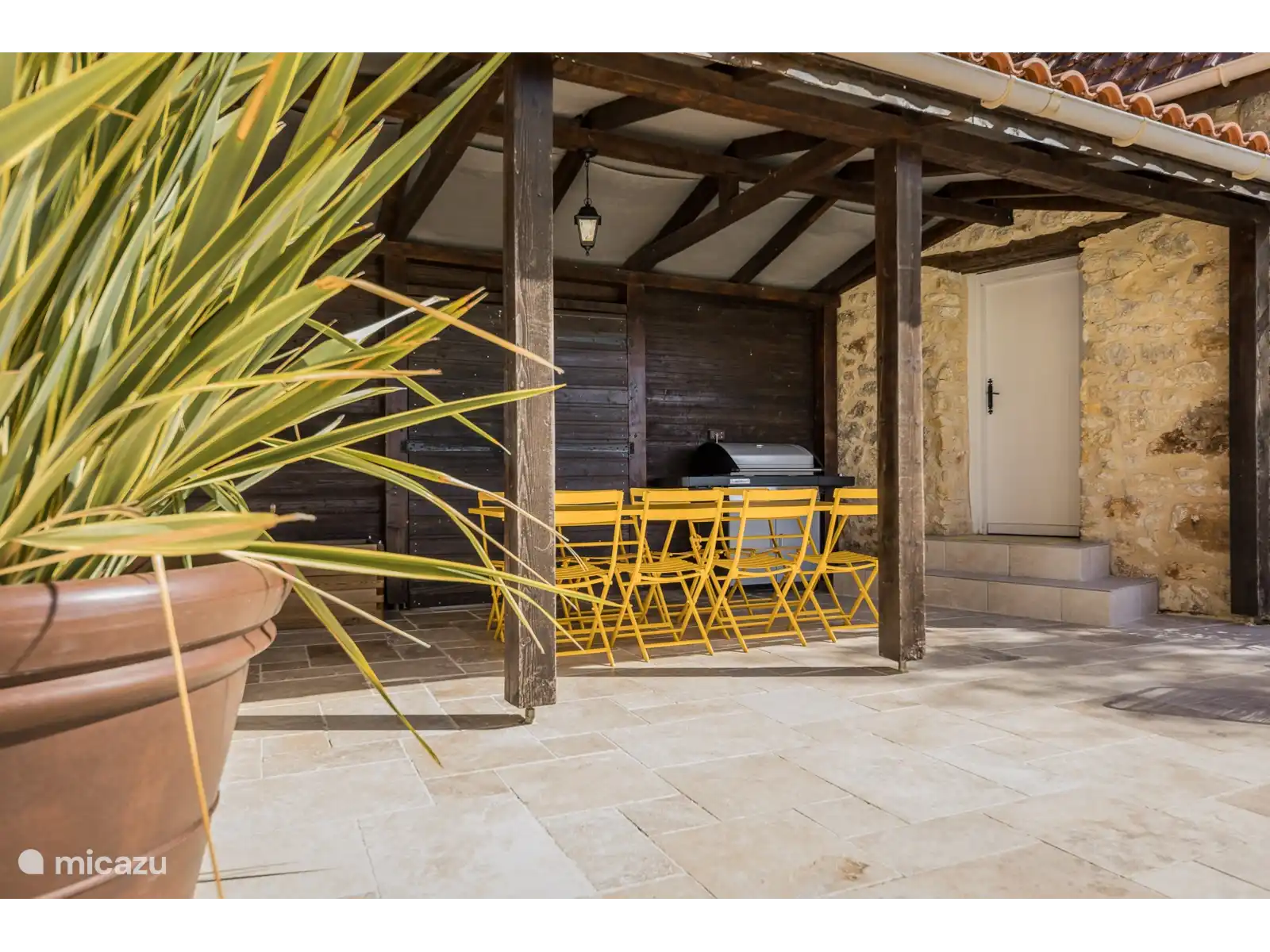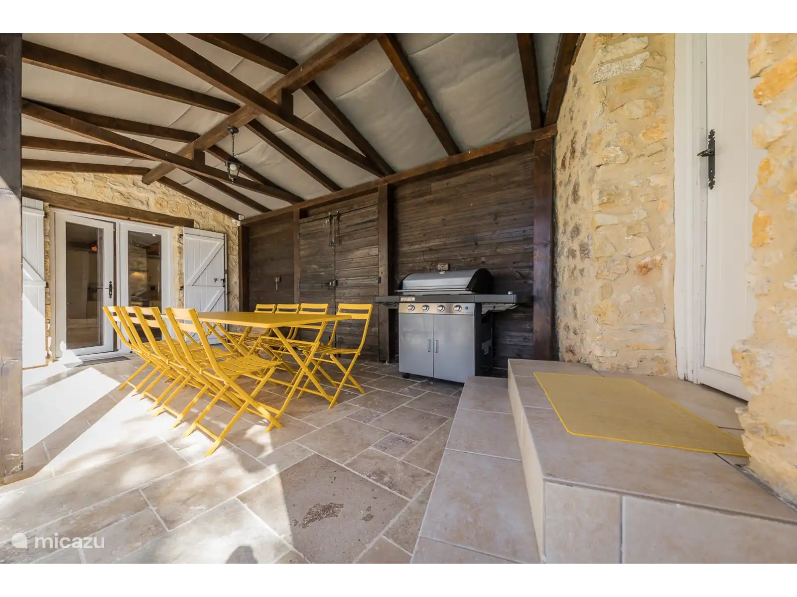 La gran terraza exterior que rodea la piscina está equipada con mobiliario de jardín, una barbacoa muy buena, tumbonas y parasoles. Mientras disfrutas de una copa de rosado, puedes disfrutar del hermoso atardecer en la terraza cubierta detrás de la casa. Mientras preparas tu cena francesa, puedes ver a los niños jugar en la piscina. ¡Eso sí que es festivo!