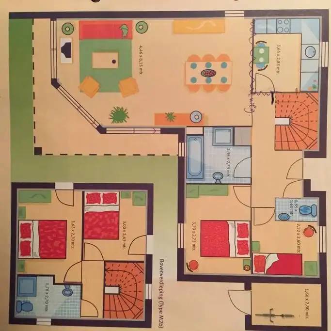 - Un tercer dormitorio: 2 personas con 2 camas de 80x200.