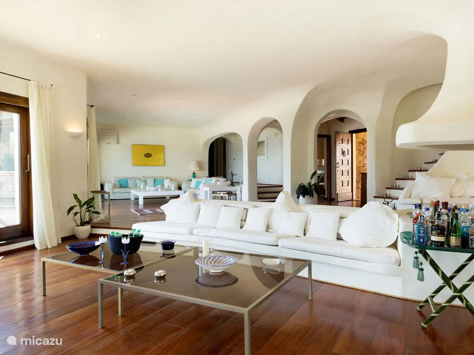 En el interior, la propiedad ofrece una sala de estar de planta abierta de 200 m² con una sala de estar con chimenea, un amplio comedor y una cocina totalmente equipada. Elegantes puertas correderas conectan estos espacios con un gran porche cubierto, ideal para cenar al aire libre y entretener a los invitados con vistas al mar.