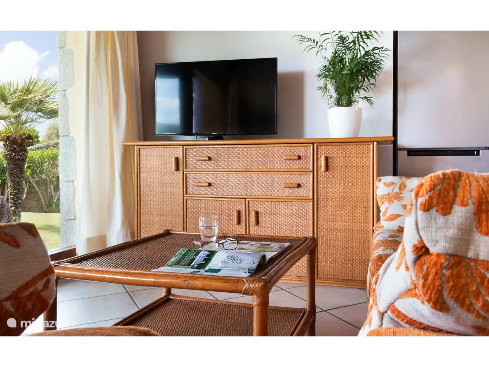 Esta encantadora villa de una sola planta da la bienvenida a sus huéspedes en una sala de estar amplia y luminosa, con dos cómodos sofás, un sillón, TV, aire acondicionado y una zona de comedor. El diseño de planta abierta cuenta con una cocina totalmente equipada con horno, refrigerador y todos los elementos esenciales para preparar comidas en casa. Desde aquí, las puertas correderas conducen al gran porche cubierto, amueblado con una zona de estar y comedor con vistas al jardín.