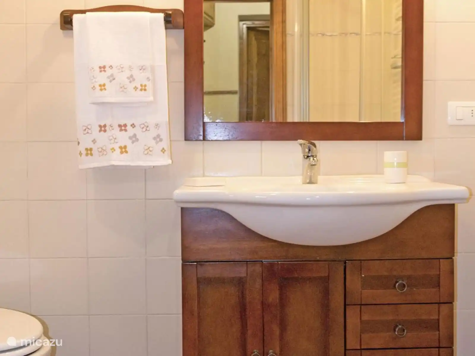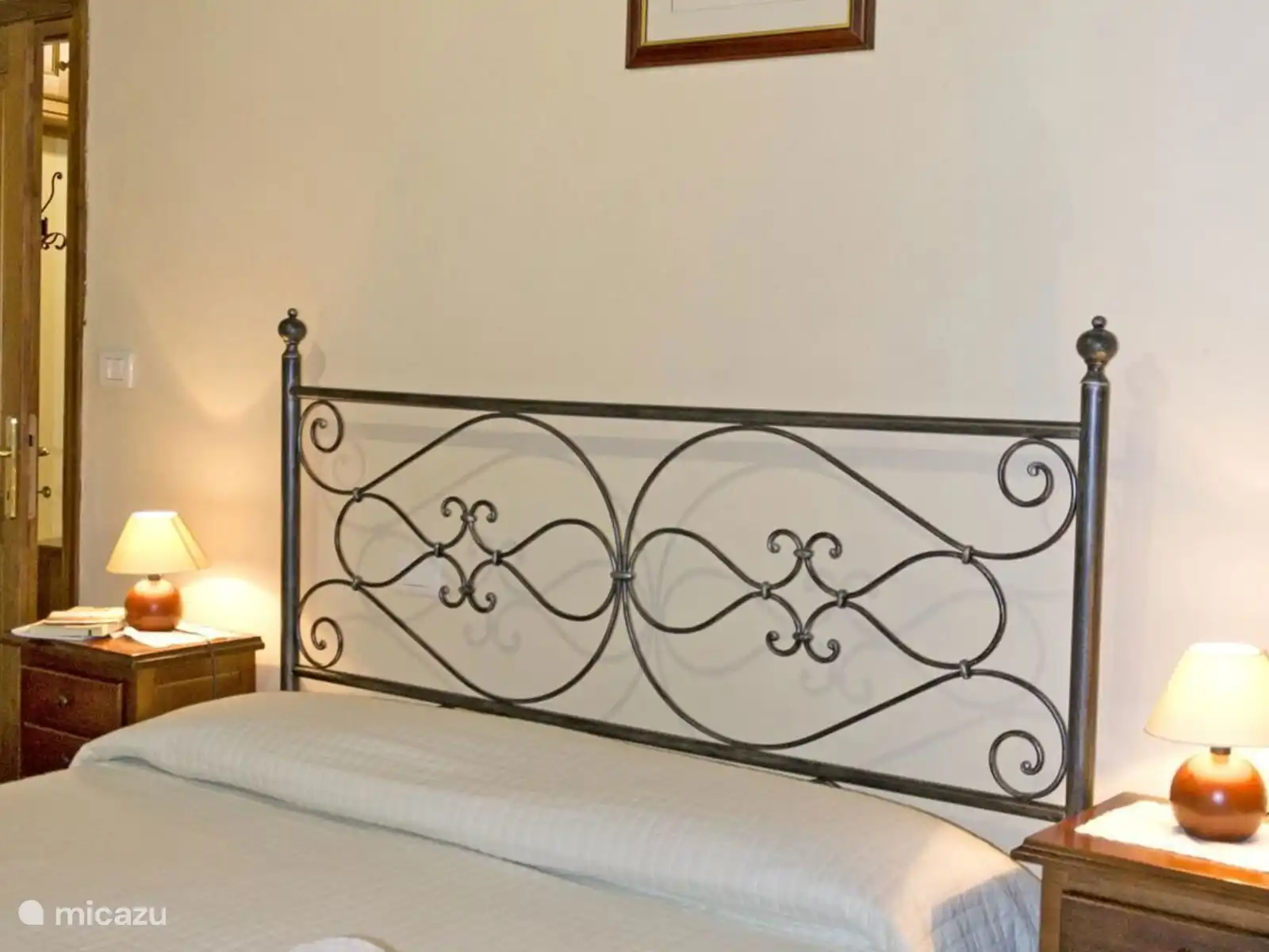 Un hermoso arco de ladrillo conduce al dormitorio, equipado con cama matrimonial y armario. La casa se completa con un baño con ducha. A pocos metros de la casa tendrás un lugar que se utiliza como lavandería para uso común con el propietario de la propiedad.